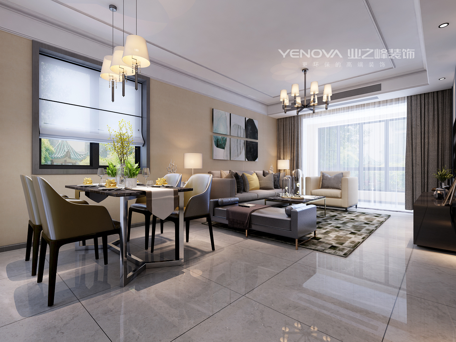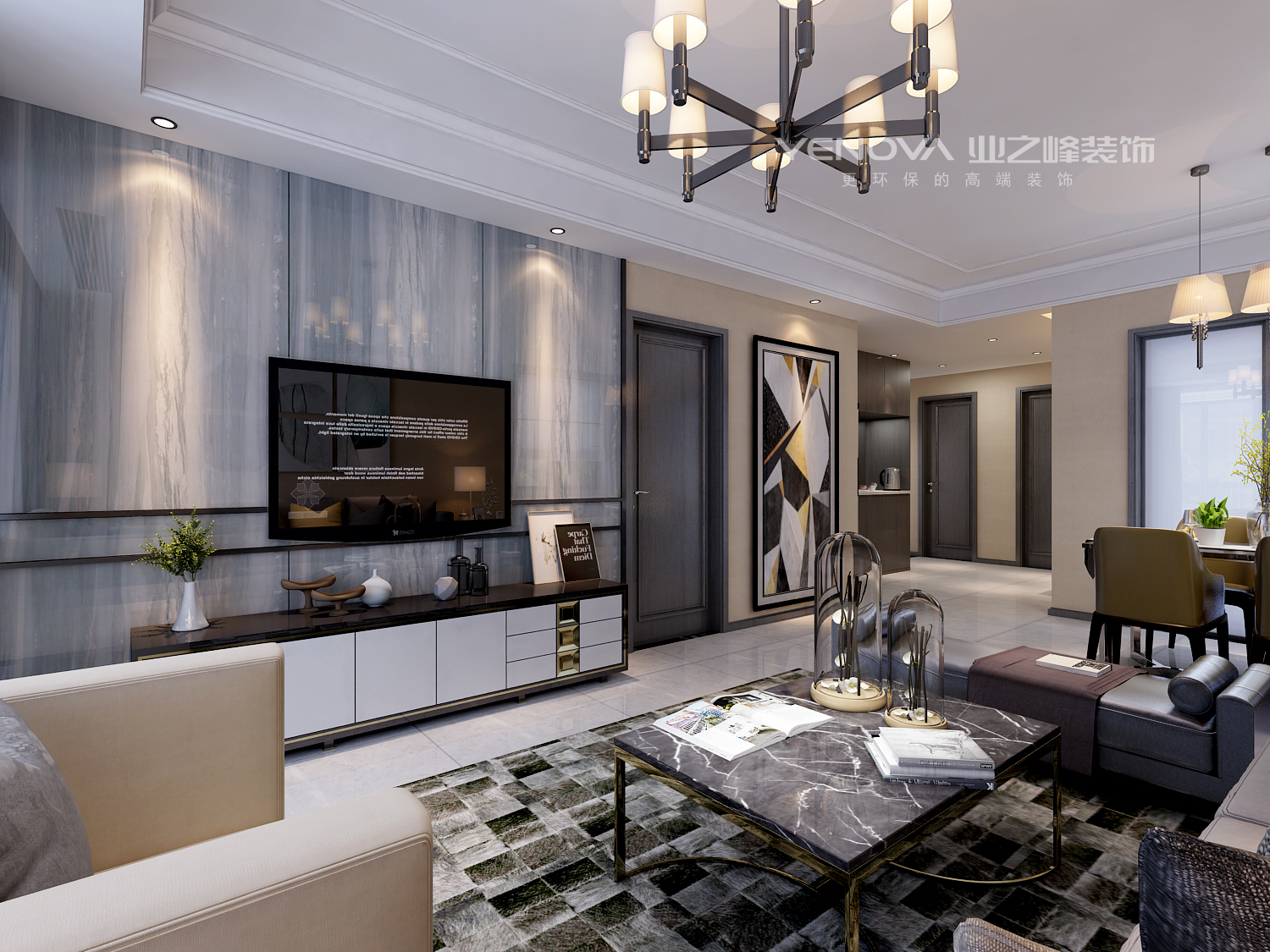 客餐厅三重叠级吊顶,目光所及,层次分明。