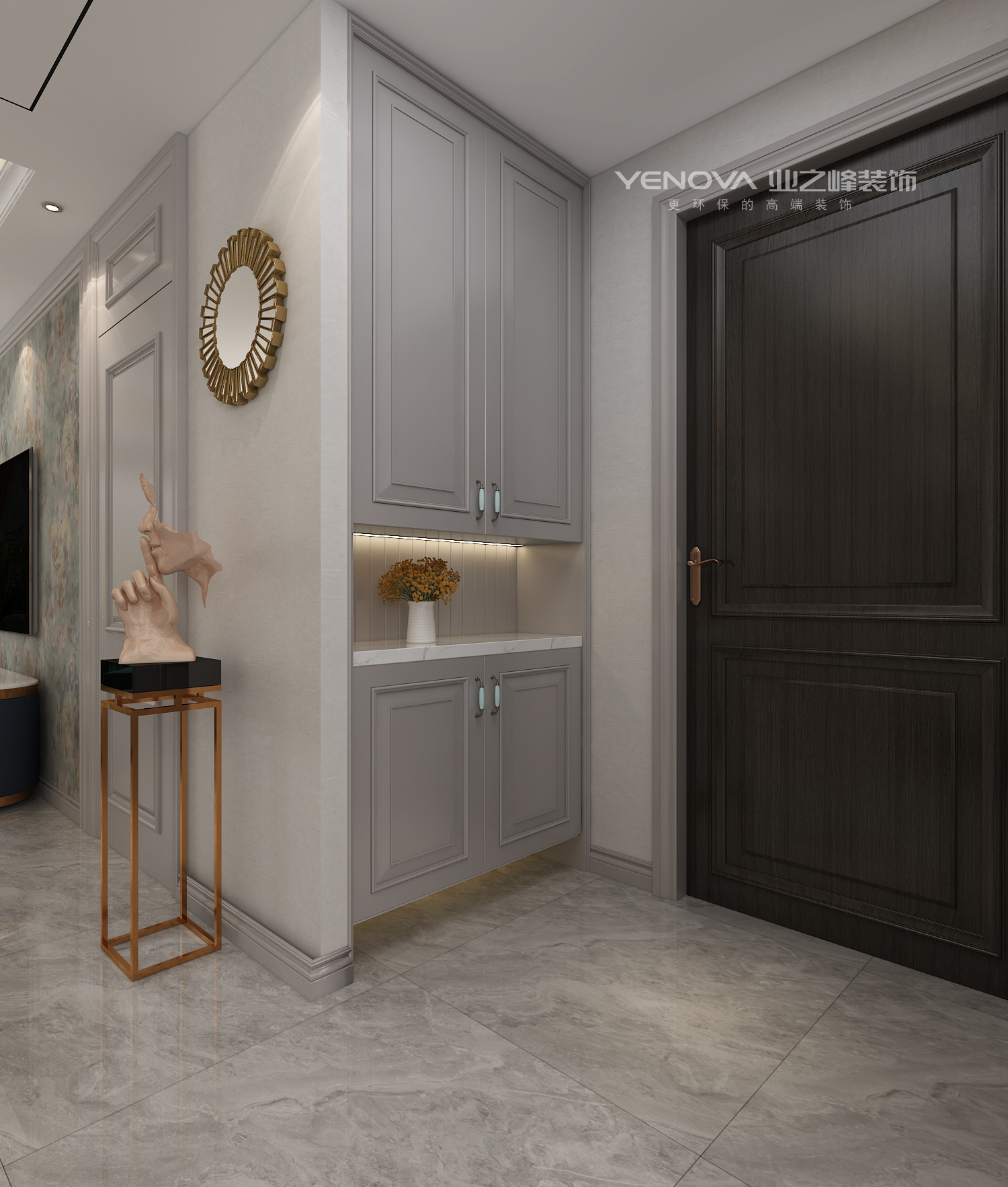 此案以简欧风格为主,舒适的家具搭配简单的高级灰的墙板,使整体感觉更加的舒服。加大储物面积,厨房墙体由柜子代替,既不放弃餐边柜,又不牺牲餐厅面积。
