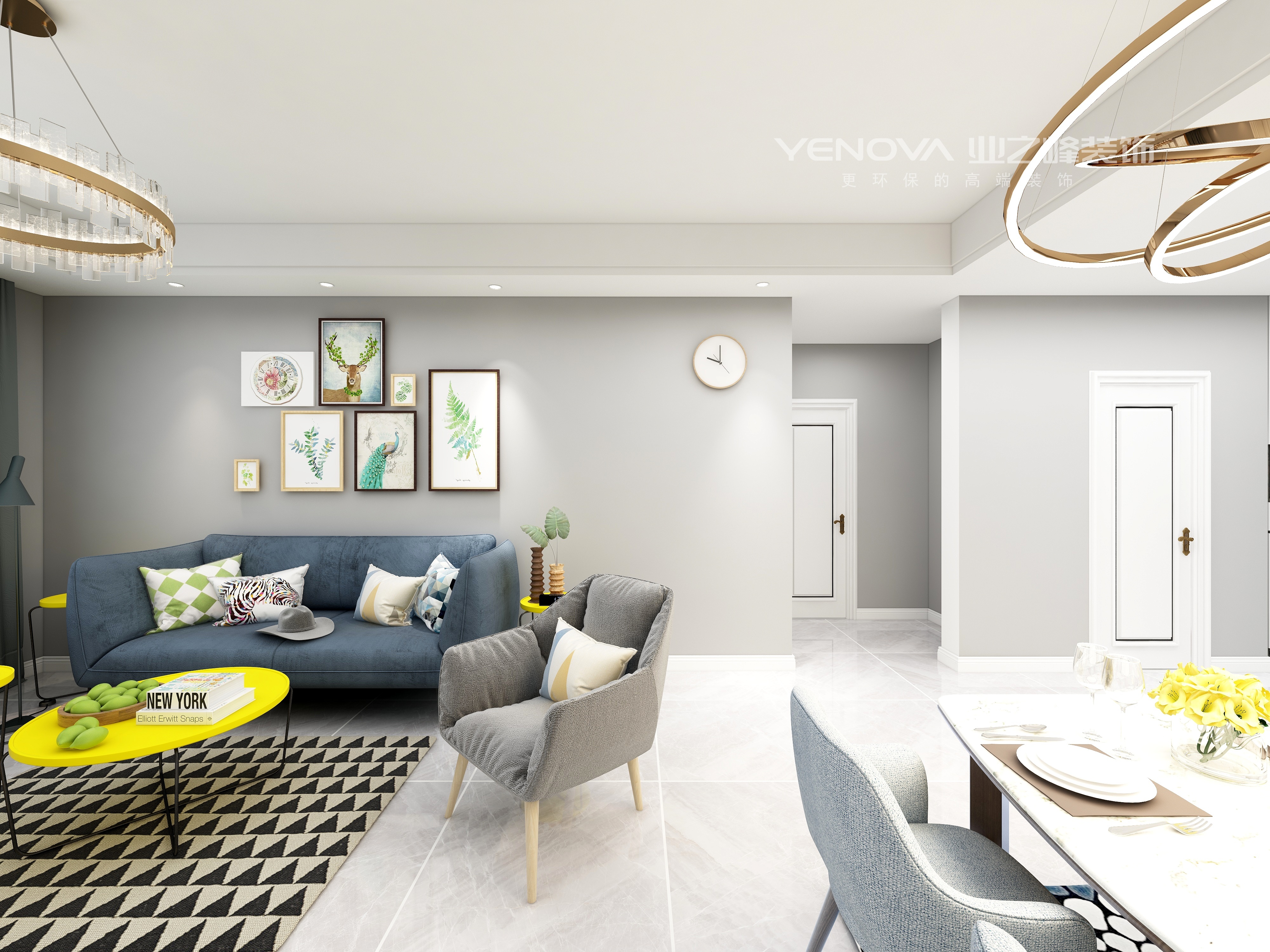 业主一家三口比较喜欢简洁大大方的设计。对于色彩来说想带一些明亮的色彩是家庭的氛围不压抑能够有放松舒适的环境