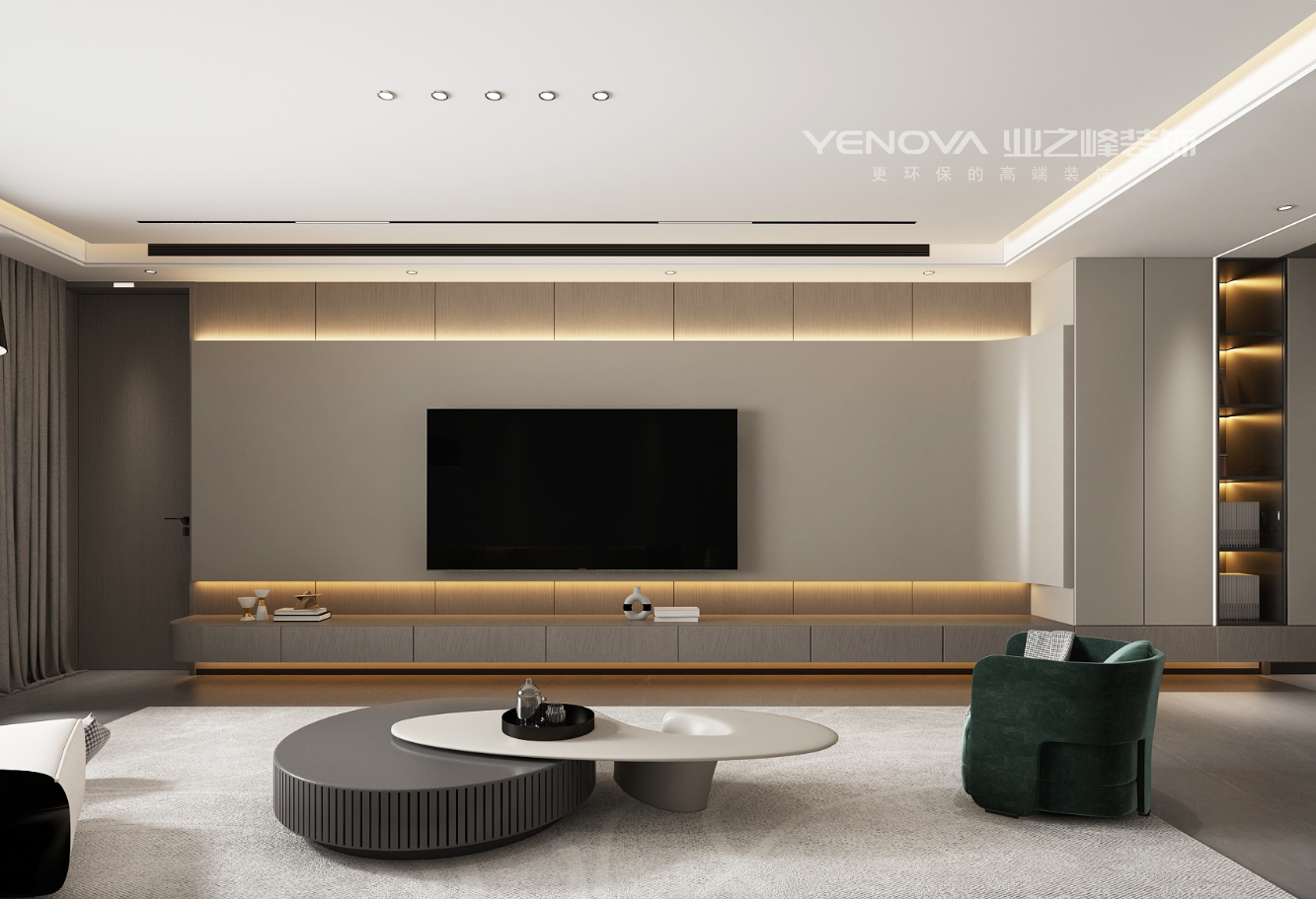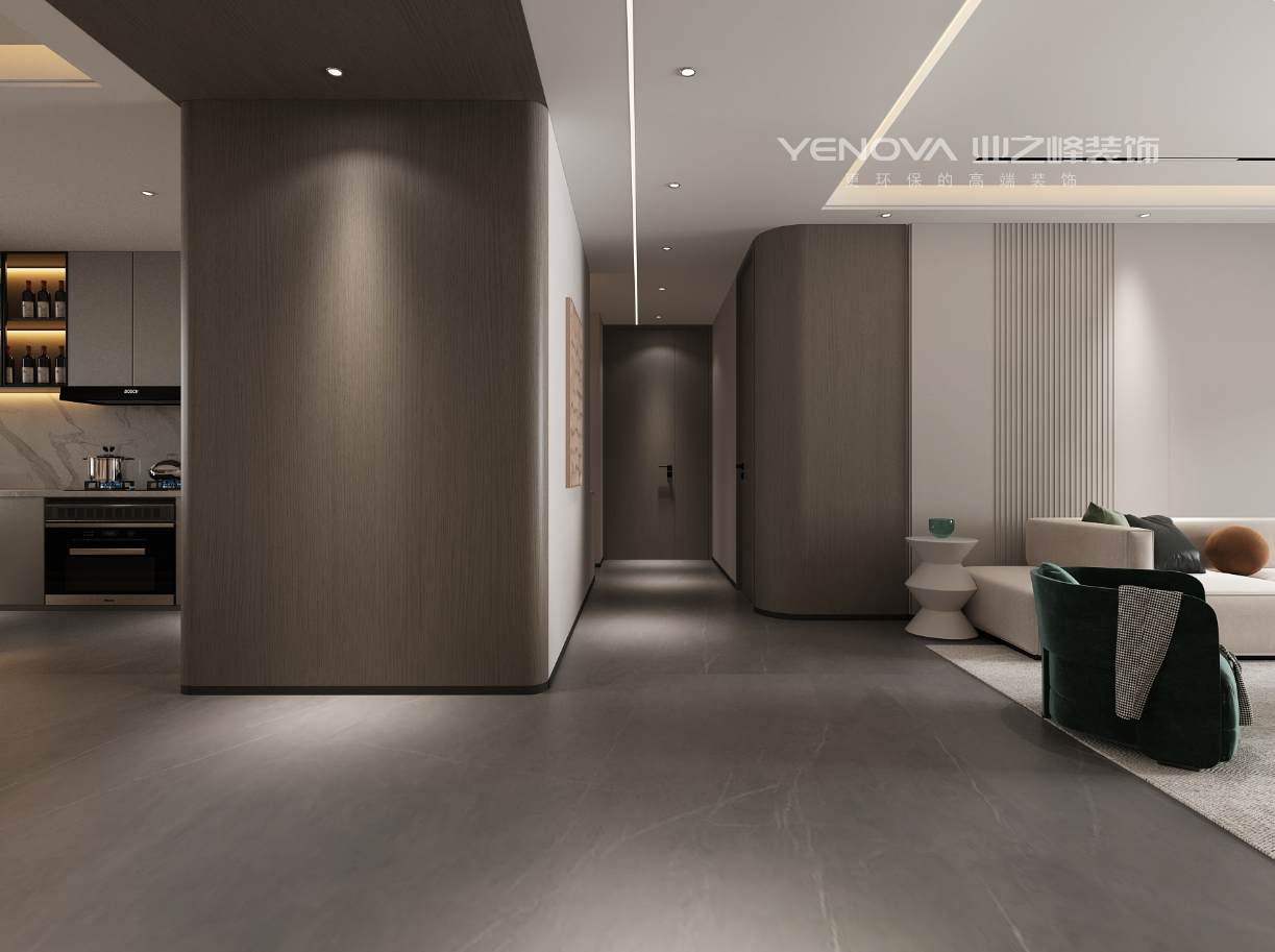 无主灯设计烘托内敛格调,大量简洁的直线条搭配细腻的弧形元素,烤漆板和木饰面结合打造的电视背景墙,提升视觉享受的同时又能在不经意间凸显生活品质。