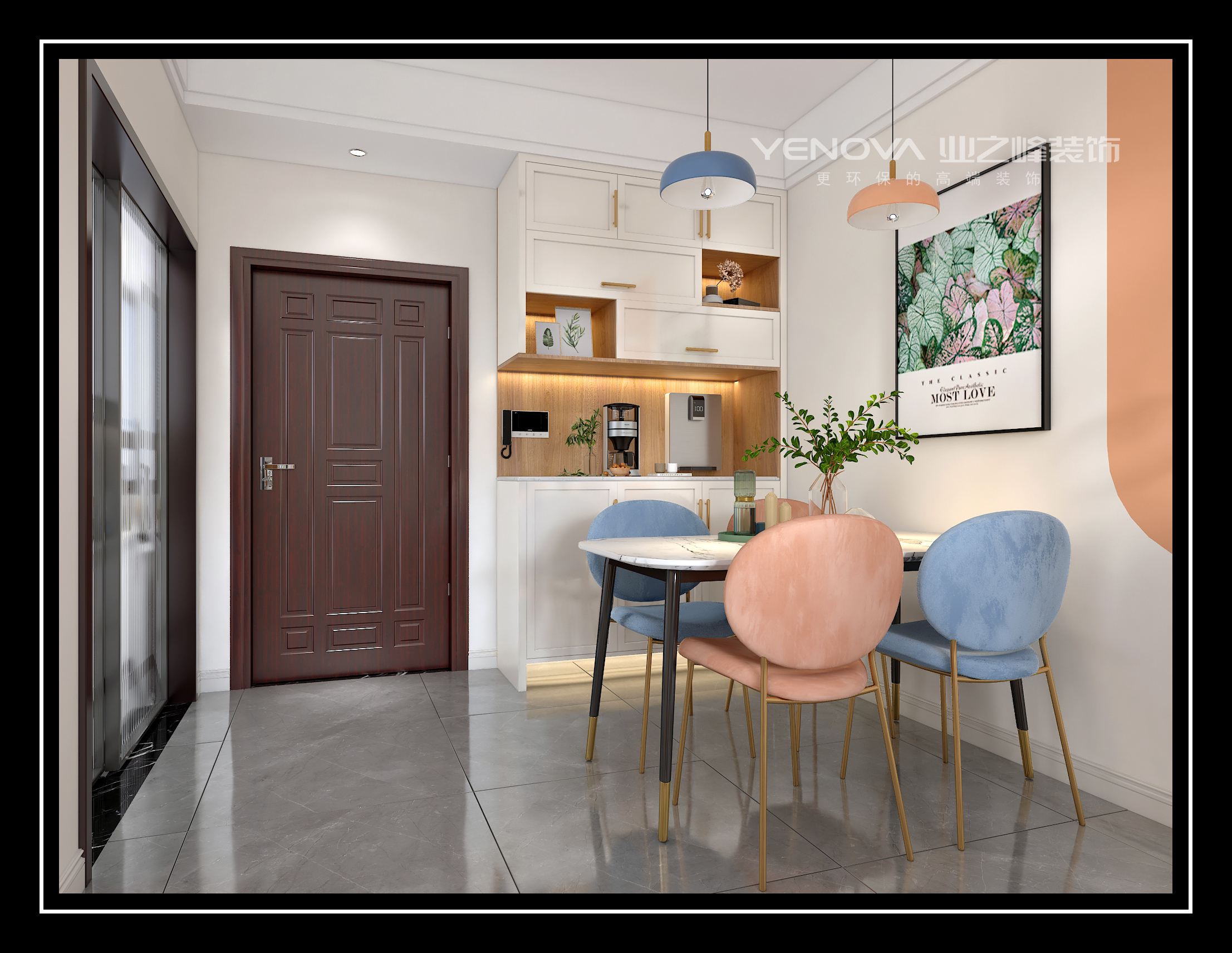 从门口进入,便是一眼望穿的客餐厅,没有做具象的分割,整体色彩偏向莫兰迪色系,让人倍感温馨和舒适,极简的挂画和绒物为空间增添柔和、亲近的感觉。以温润的色彩和柔和的线条而著名,呈现一个舒适的室内空间,每一个设计项目都能让客户感受到与众不同的归属感和亲近感,将生活的本质体现得淋漓尽致,所有的细节之处都融合得恰到好处。