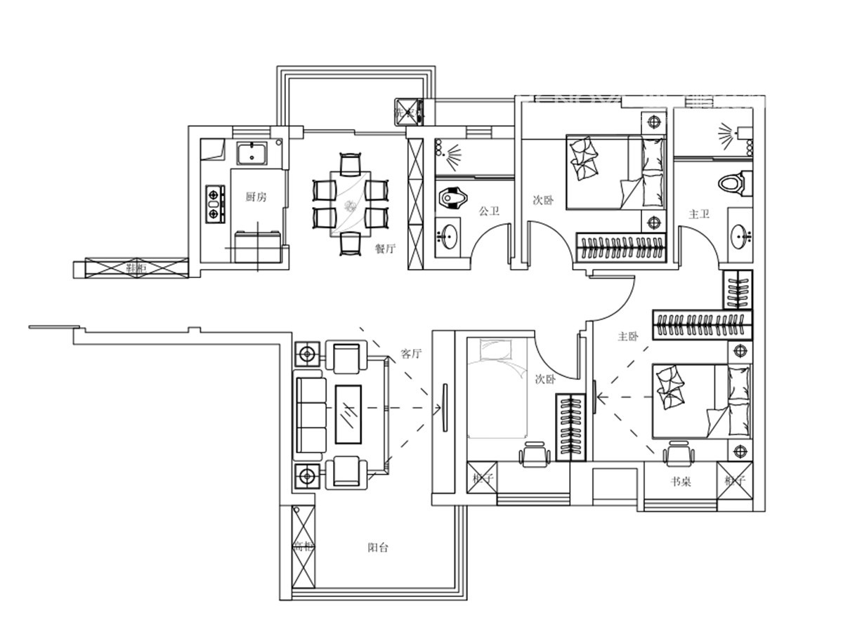 小区:金辉·公园里 面积:138㎡ 户型:三居 风格:现代简约风格