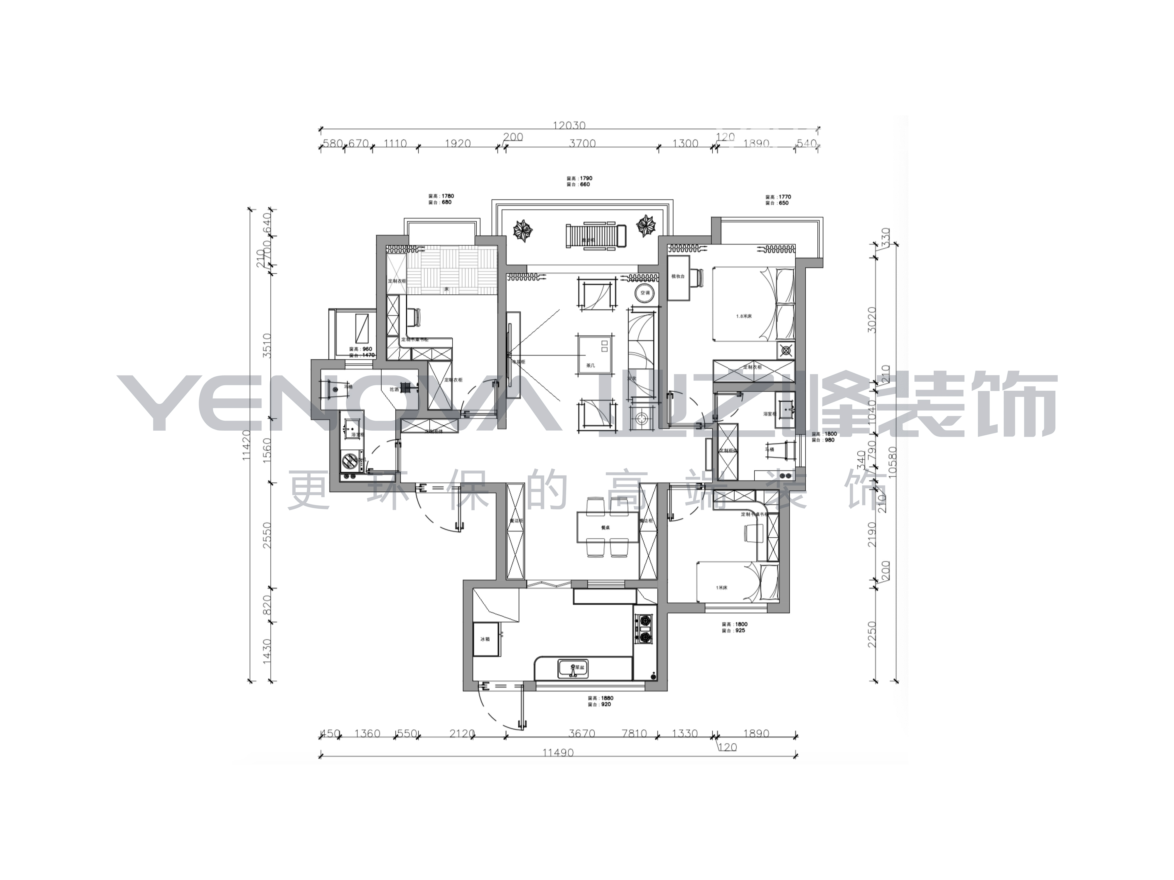 本案是三室两厅一厨两卫的住宅,业主是一家三口,通俗化特征将轻松愉快带入日常生活,使每天的行动不再象举行宗教仪式般严肃刻板。现代主义是设计的理想主义,而后现代则强调人们生活在“现在”,后现代设计也自然而然地表现出物质的特征。享乐主义高于一切,快乐是最重要的原则,本案以简约为主,复杂的造型没有。