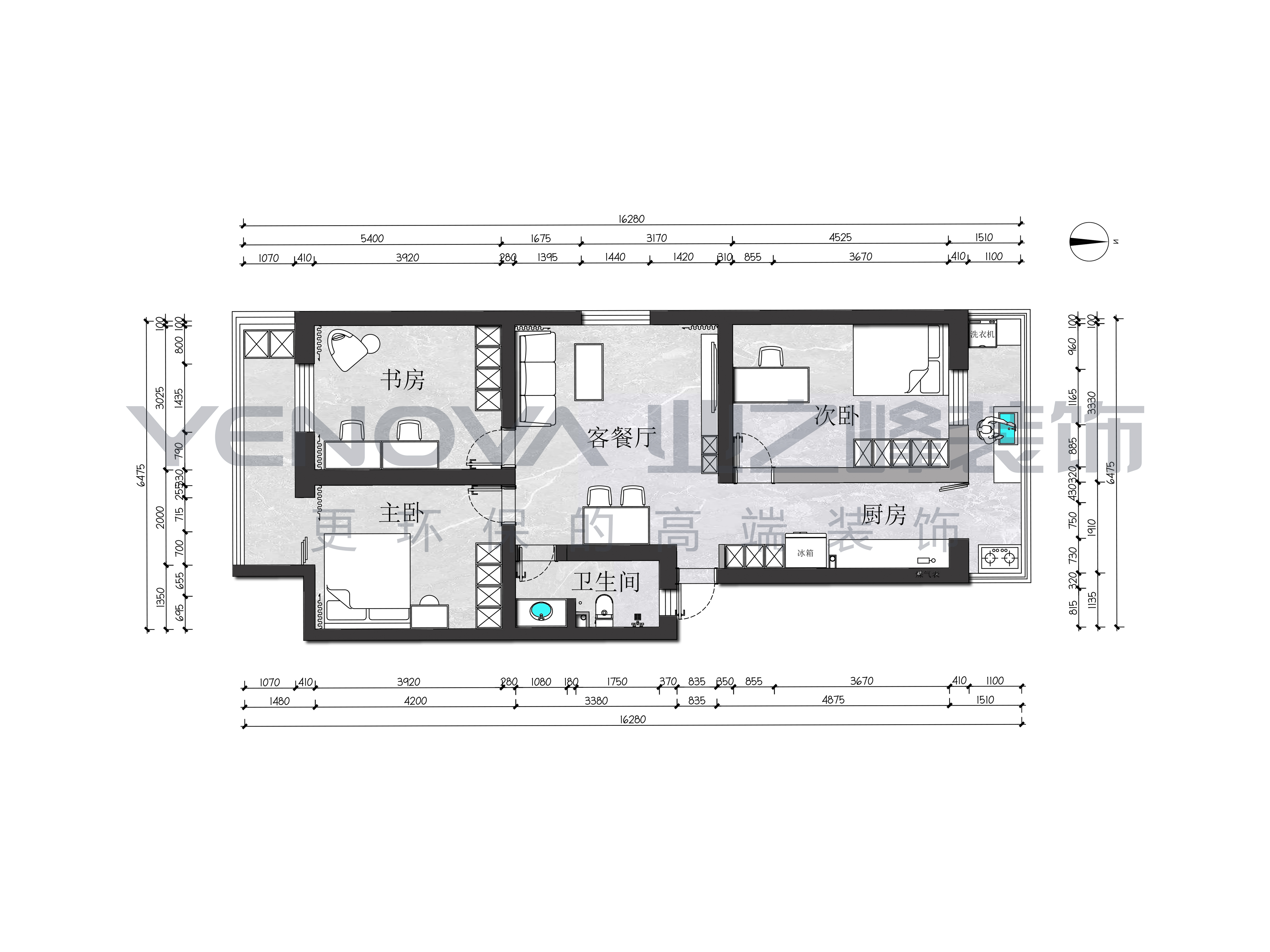 本案是简约风格,其特点是简洁明快,实用大方。讲求功能至上,形式服从功能。所以在设计时没有太多实用价值的造型都能省则省,以简约为基调,减少材料的浪费。简约就是简单而有品味,这种品味体现在配色的设计上对细节的把握,每一个细小的局部和装饰,都要深思熟虑,其最大的特点是同色、不同材质的重叠使用,使装饰耐看、经得起时间的考验。