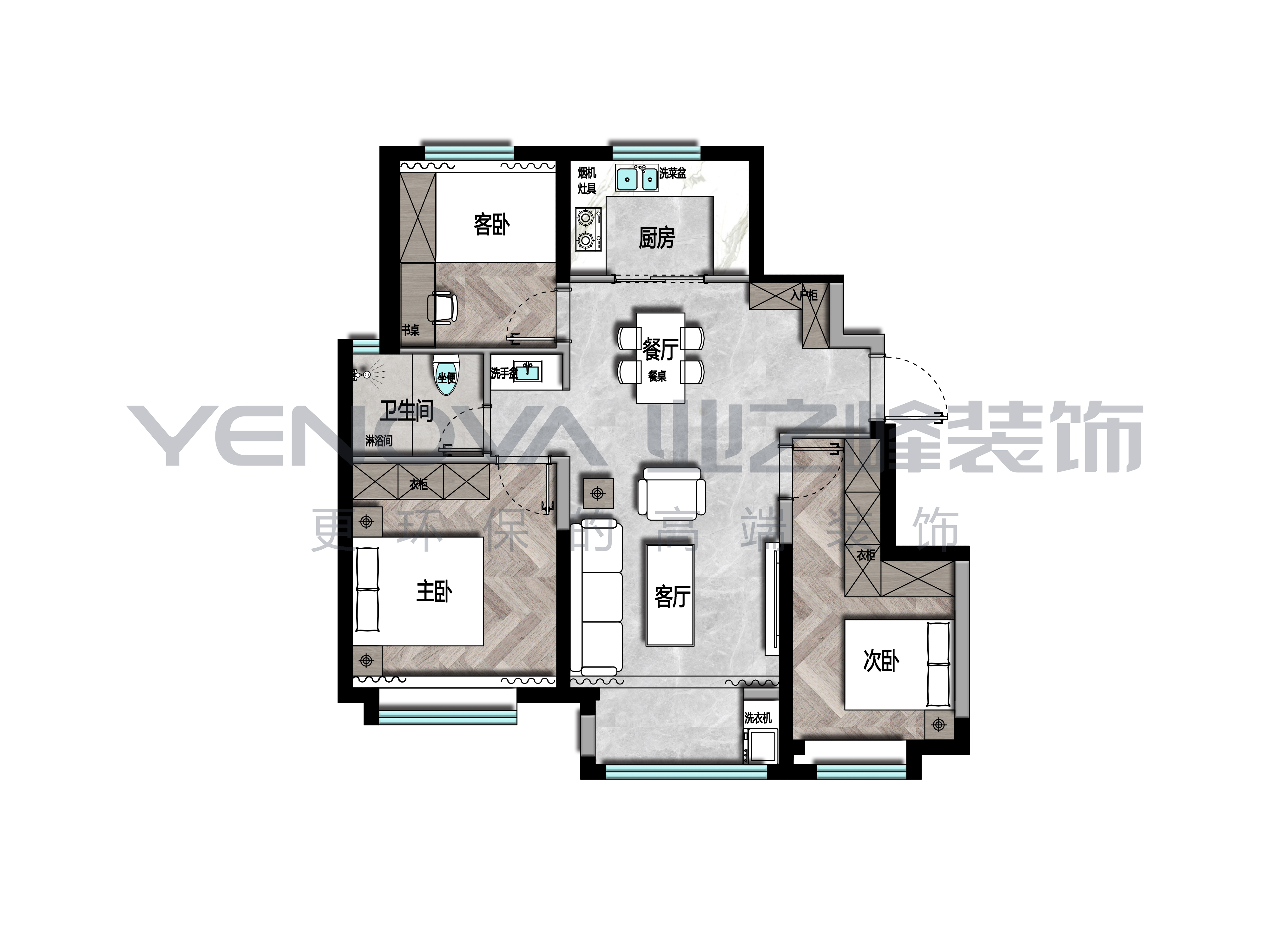 小区:金地悦城大境 面积:100㎡ 户型:三居 风格:轻奢风格