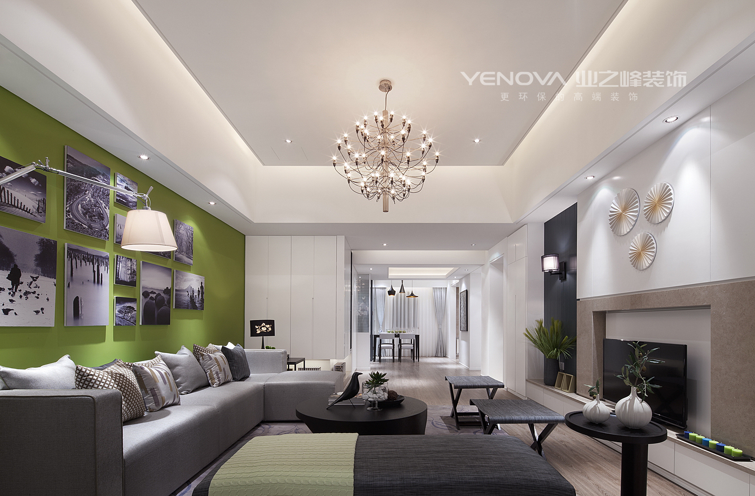 家是心灵的港湾。“现代简约风格”自然就成为家居设计的一种风尚。注重大小色块间的组合,地域性的后期配饰融入设计风格之中。简约,不简单走进现代简约风格家居。现代人面临着城市的喧嚣和污染,激烈的竞争压力,还有忙碌的工作和紧张的生活。因而,更加向往清新自然、随意的居室环境。越来越多的都市人开始摒弃繁缛豪华的装修,力求拥有一种自然简约的居室空间。此居室整体采用中性色调,稳重,大气,却又不失品位,有令人眼前一亮的感觉。最重要的是强调功能性设计,线条简约流畅,色彩对比强烈,这是现代风格家具的特点。此外,大量使用茶镜、条纹壁纸等材料作为辅材,也是现代风格家居风格的主要装修材料,能给人带来现代、时尚,大气的感觉。