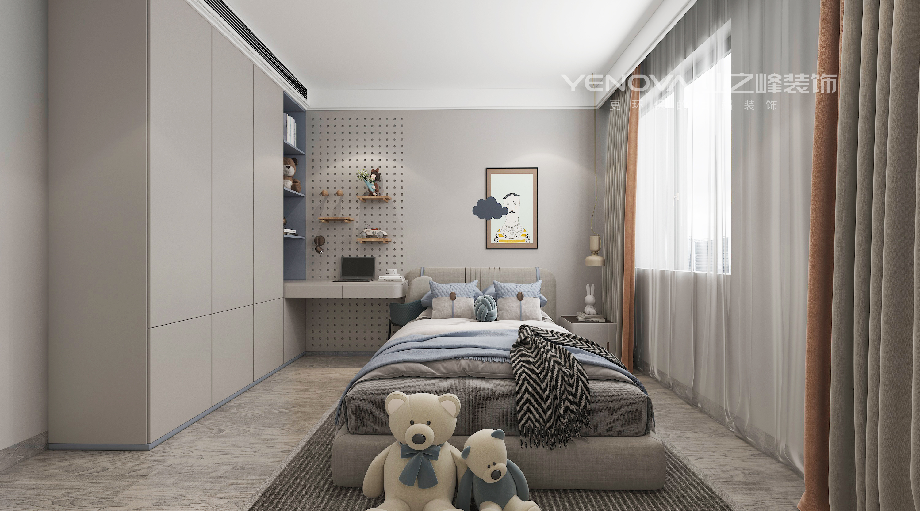 本次业主希望整体可以有一种简单舒适的感觉,以返璞归真还原生活本色,用简单的设计打造生活中的温馨感。整体以淡雅为主调,大面积的灰色与莫兰迪色系的餐桌相辅相成,线条感十足的时钟与落地灯增加了艺术感。🛌主卧室白色与灰色的撞色设计,灰色系地板加上明亮南向明亮采光大窗户,突显了整体的简约风与高级感。儿童房整体采用莫兰迪粉,在床头位置摆放学习桌的上方安装置物柜,满足实用性的同时也增添了几分童趣。