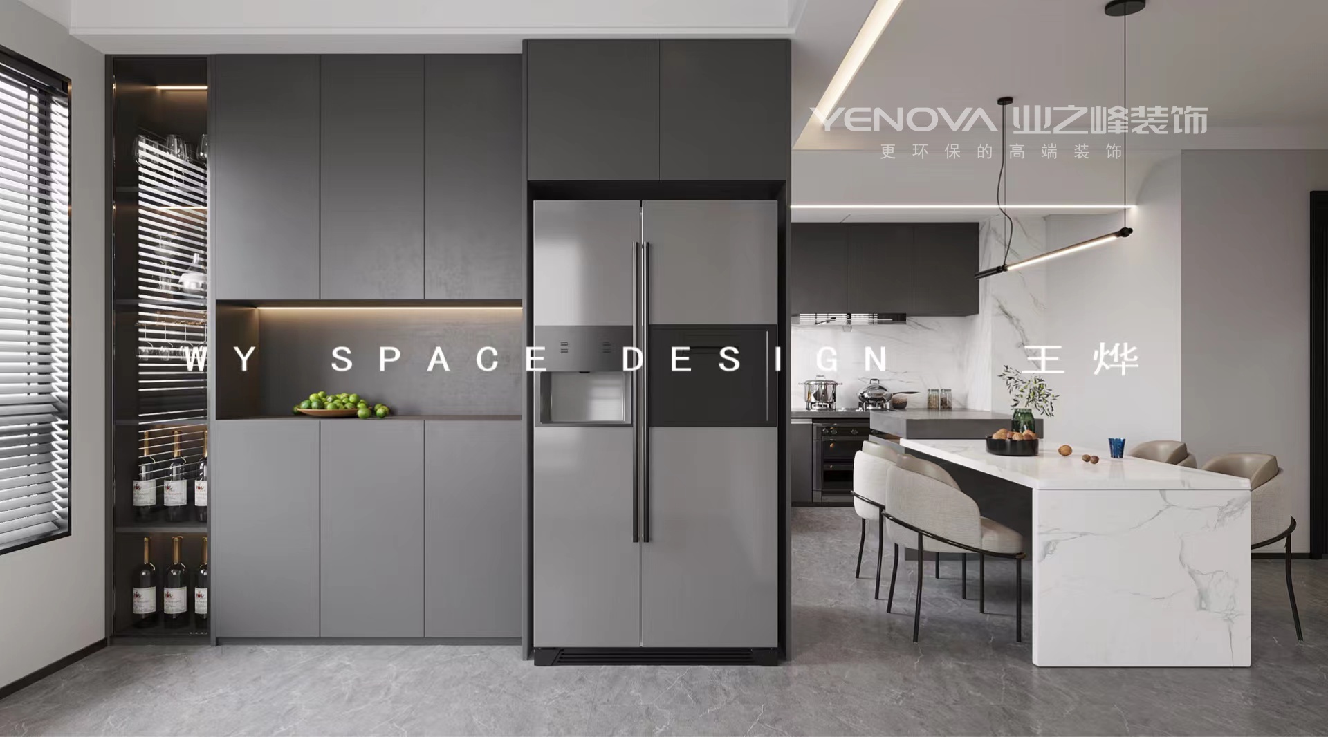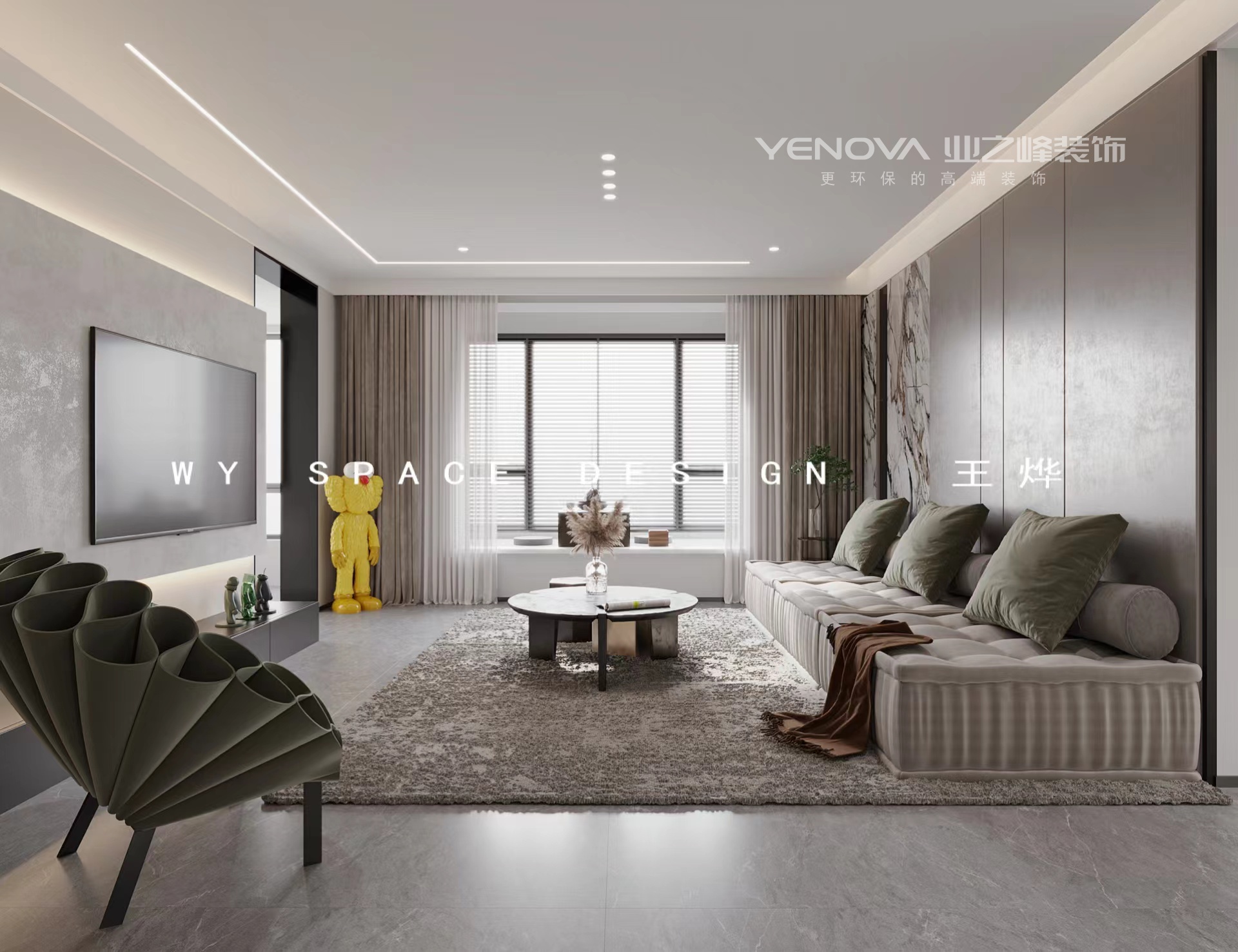 业主是一对年轻的夫妻,男业主喜欢现代轻奢暖色调,女业主喜欢现代极简冷色调。所以本设计方案最终配色是为了结合二者想法,去做到一个平衡点。大面积留白墙面,灰色系全屋定制,不失现代极简;暖灰墙板,局部金属装饰,玻璃门扇,不失轻奢。