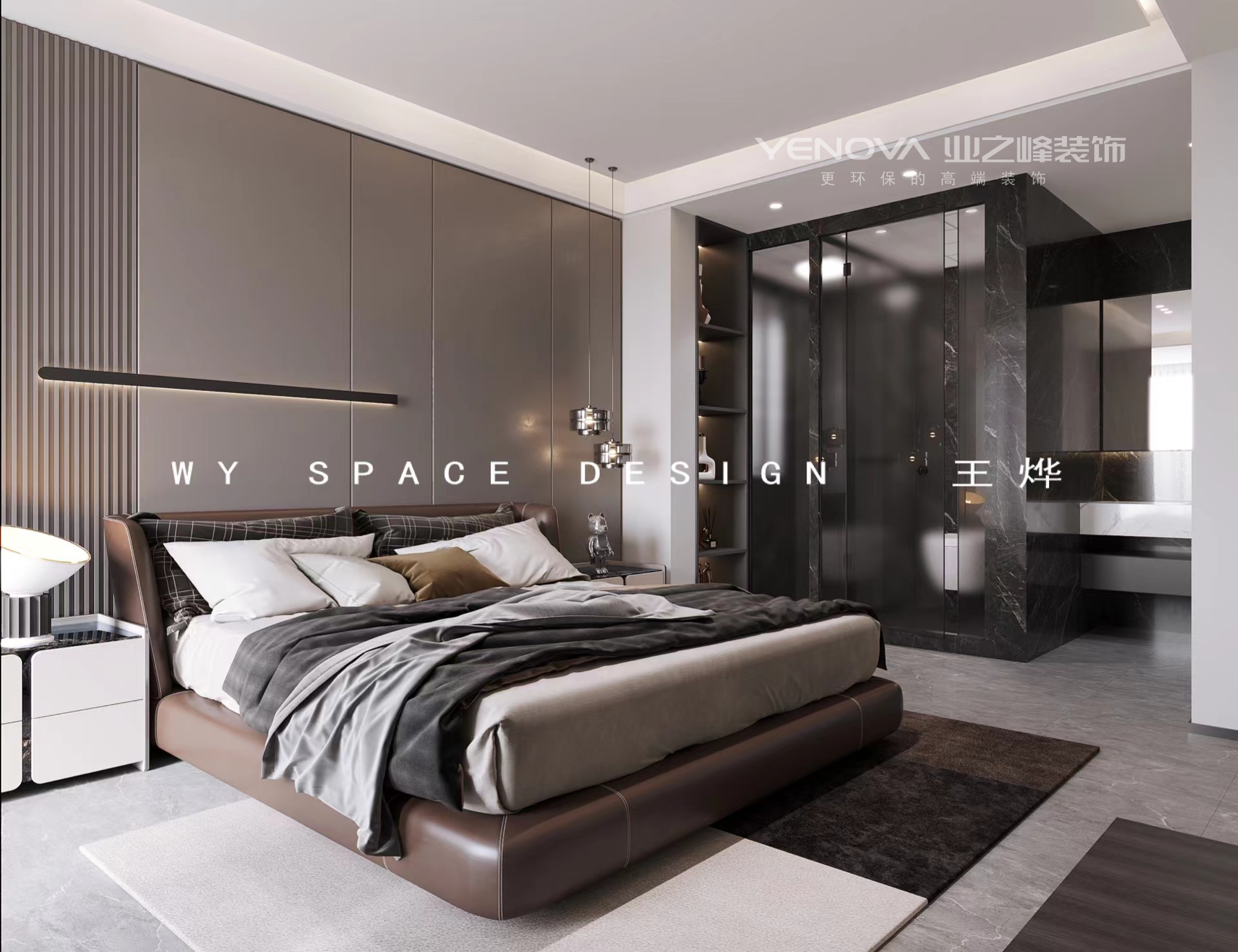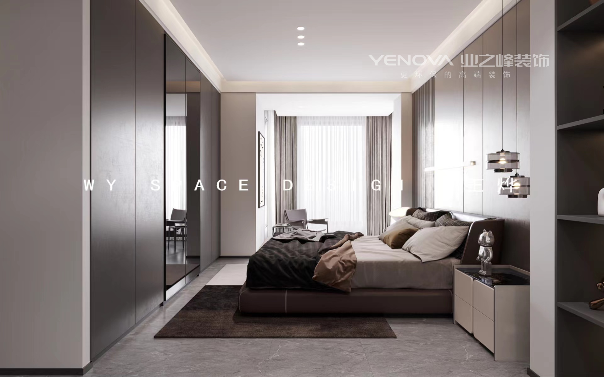 主卧:业主属于思想前卫时尚的,故主卧改造就是为扩大整体空间感,保证储物功能足够前提下,做了分离式半开放卫生间。