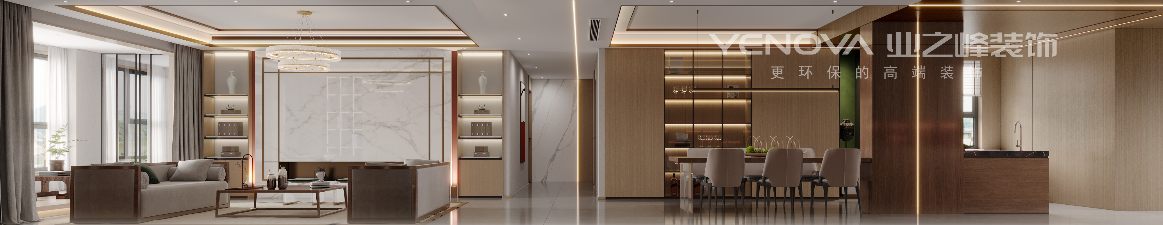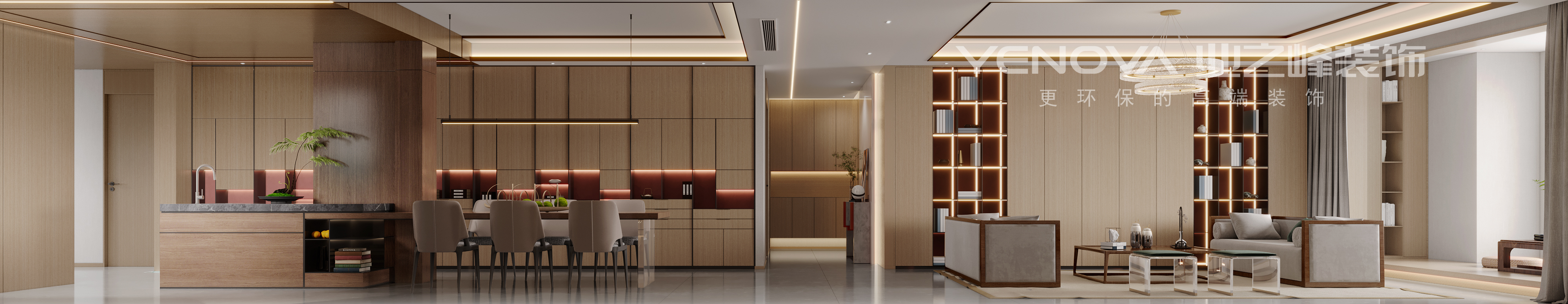 本户型为丹轩坊220m²大平层,定位为新中式风格,在空间规划方面,设计师先拆除了原有的厨房,使餐厅形成了及餐厅与岛台相结合功能布局,让空间感更加豪华。,又隔离了通往主卧的阳台门,使小部分阳台成为主卧的一部分,既保证了主卧的隐私性,又增加了衣帽间的面积。与之相同手法,隔离出的阳台墙体,成为了客厅的一部分,依照沙发背景墙的阳角,设计师做了地台结构,让空间更加具有层次感。在风格以大面积的木色表现新中式的古朴大方,用小色块的整体点色进行贯穿,而木色的沉稳内敛,秉持整个空间古雅大气的调性。在家具等地方精致的收边也体现了品质的要求。案例整体去繁就简,让灵感在谈话中碰撞空间的美好不止于流露出艺术的视觉表象更在于重塑一种属于当代人的诗意慢生活。