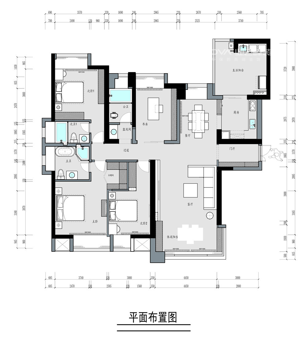 小区:人居东湖长岛 面积:199㎡ 户型:四居 风格:现代简约风格