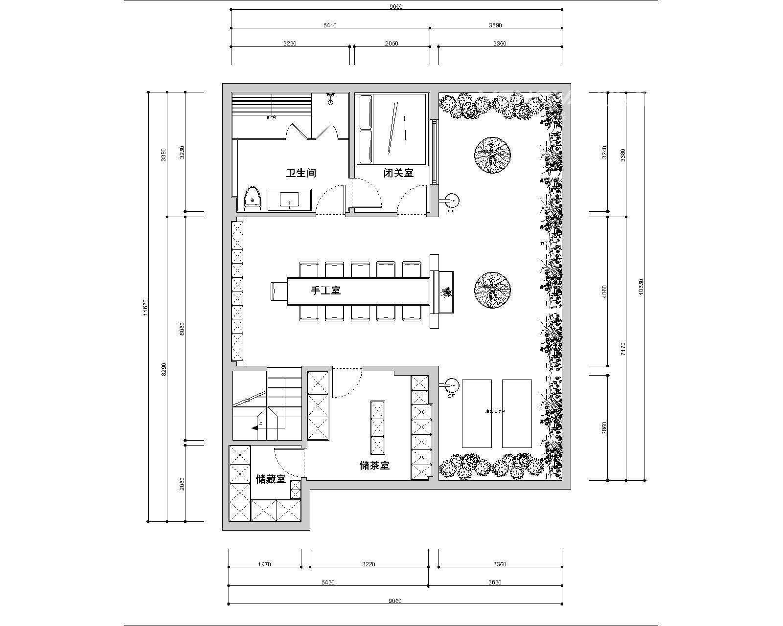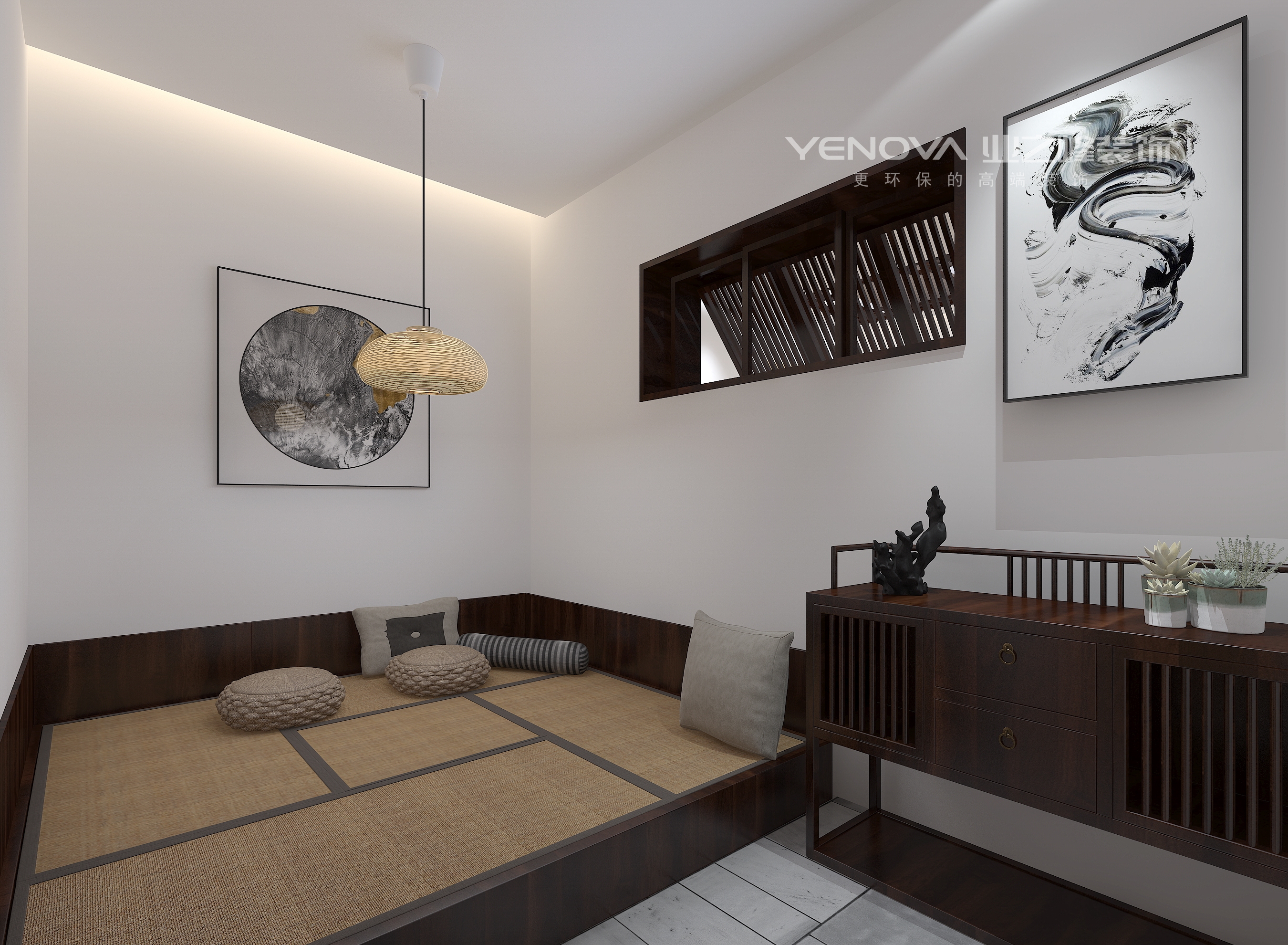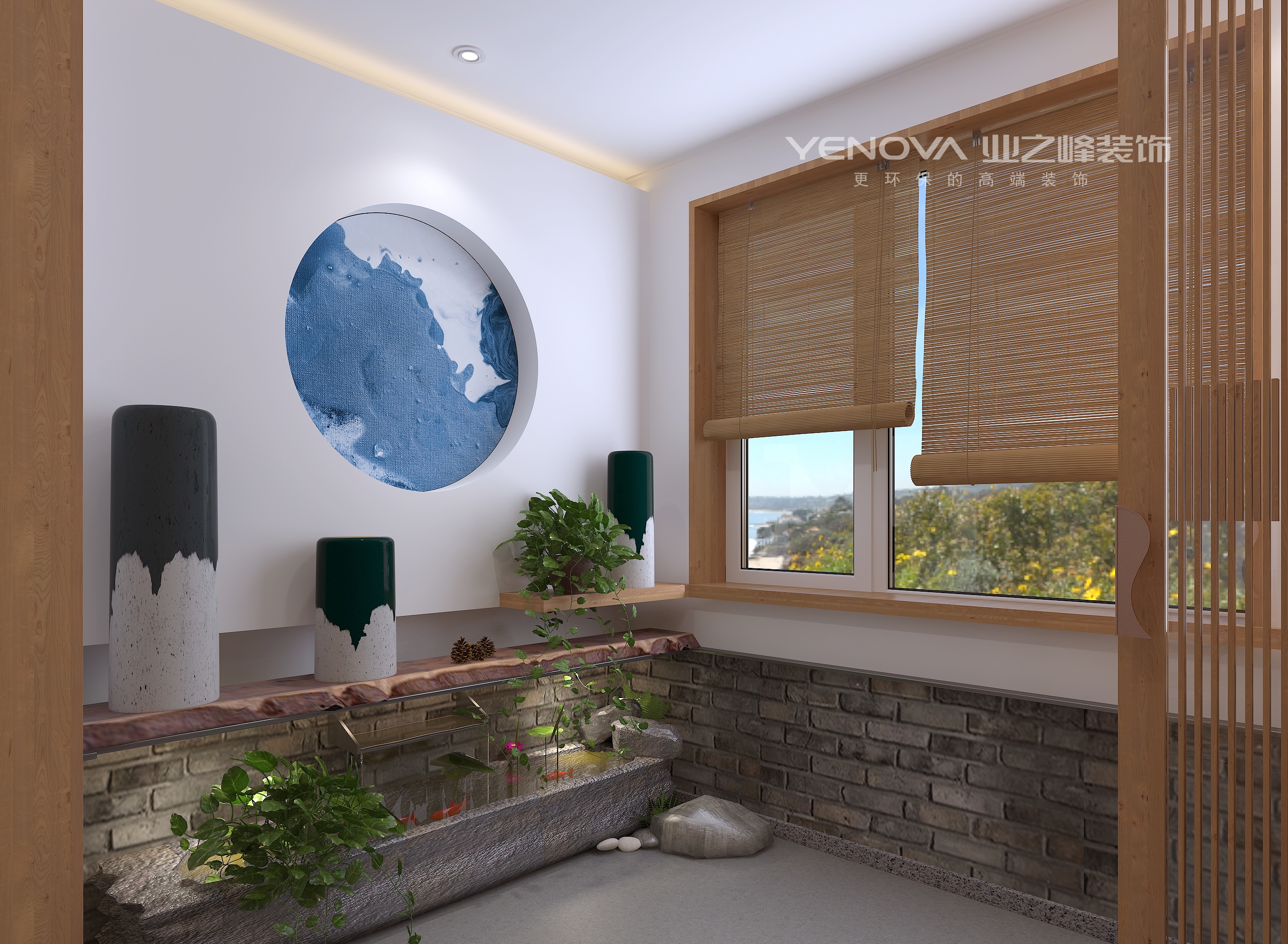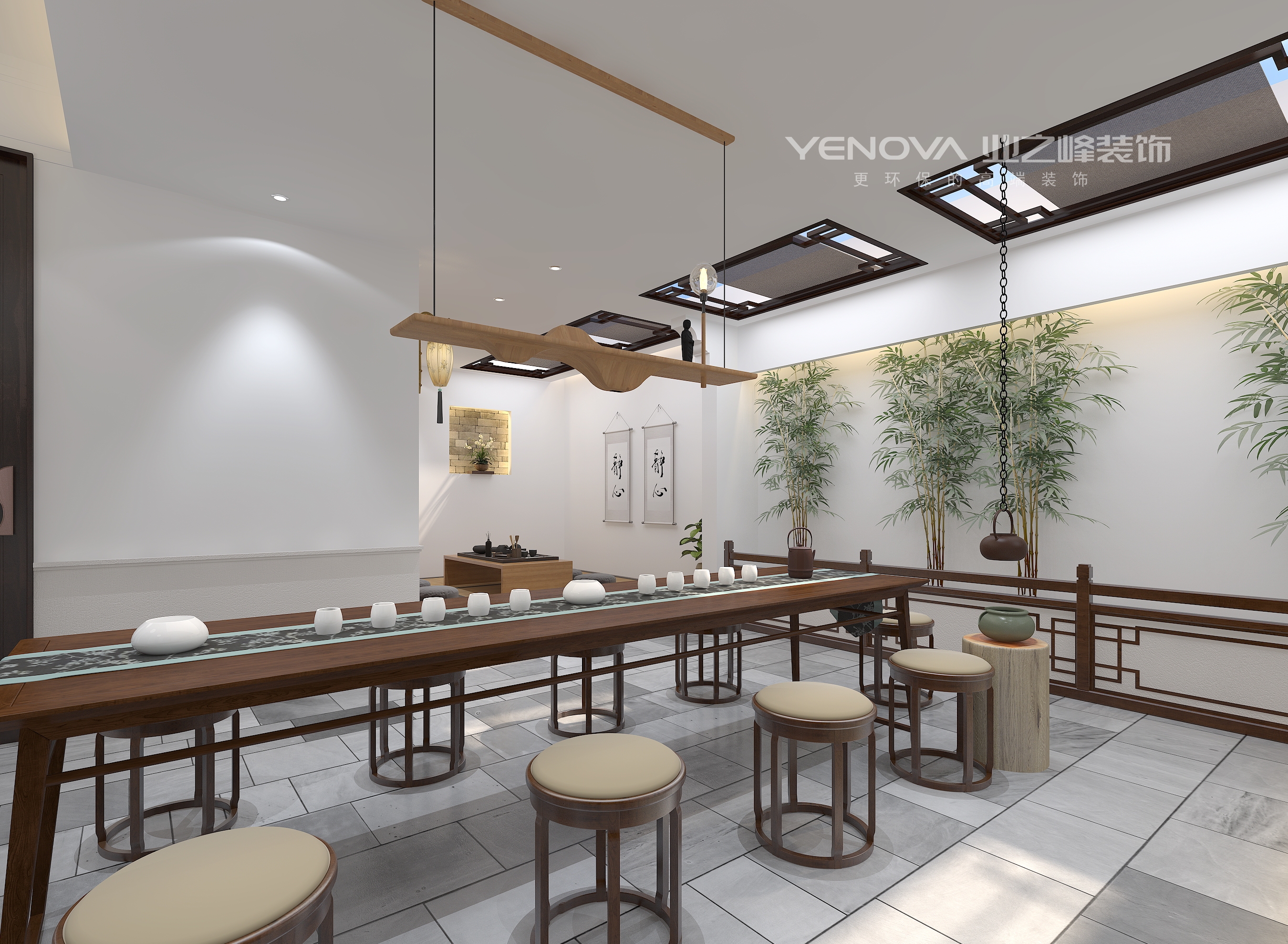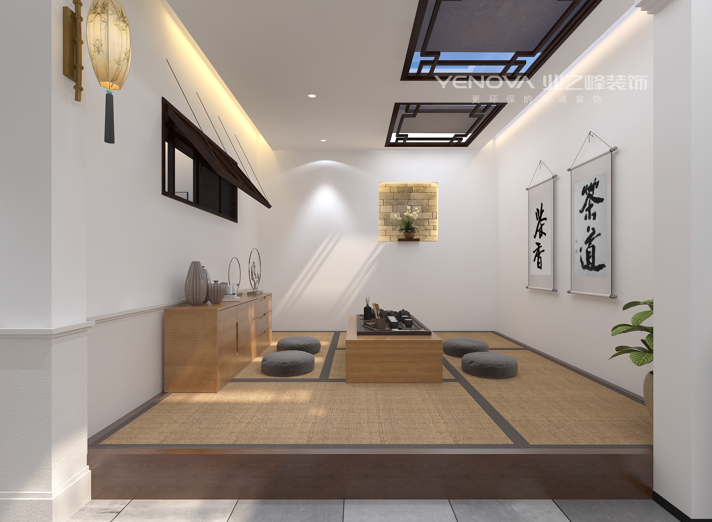 茶室是一个安放心灵的空间 所以在设计上,以简约、自然舒适为主温润的木色和清雅的绿植年释放一种素雅、静谧的空间气质 茶架的格子柜体,在使用上也更得心应手.有藏有露的设计,既能放常看书籍 也能收纳起--些藏品台 为生活更平添了许多悠闲和禅意。