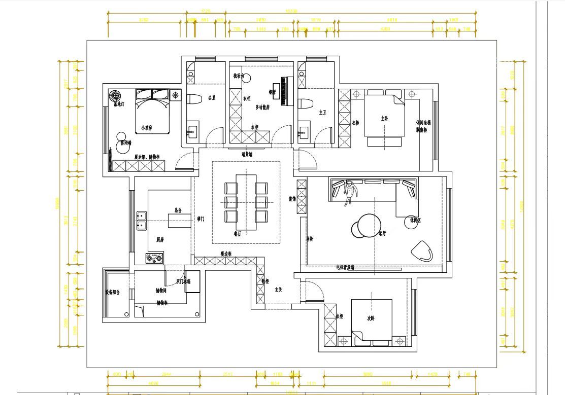 小区:金座伊方锦 面积:189㎡ 户型:四居 风格:轻奢风格