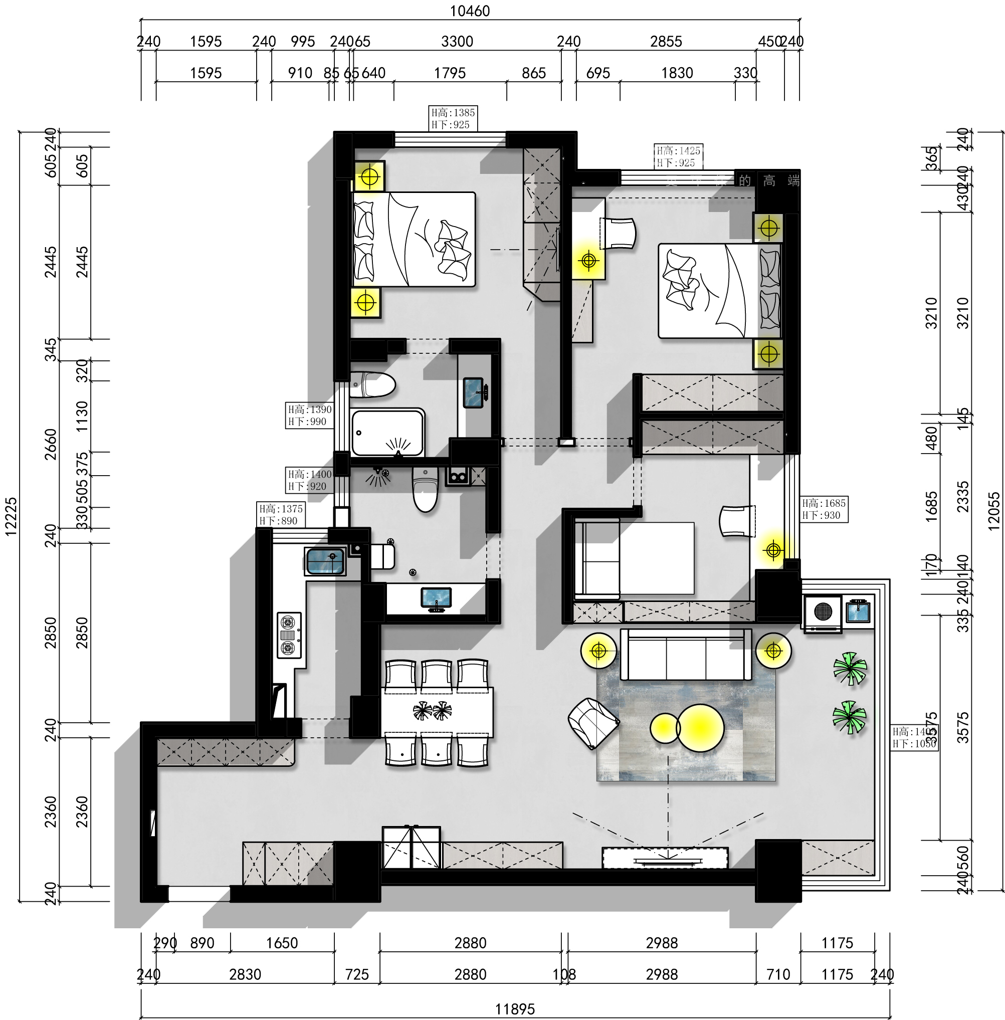 本案例为旧房改造,现在顾客准备以此房为长居房,原始空间布局基本不变。客餐厅的餐厅部分基本保持原有布局,而入户玄关部分则改造成了厨房的延申,使实用性更强,在客厅部分进行了小小的改动,将客厅电视背景墙部分使用柜子进行与书房的隔断,使空间利用率达到最大化,全屋以追求实用简约为主,将储物空间尽可能的利用起来,但又不显突兀,以白色与浅灰的搭配,使整体空间显得干净通透。