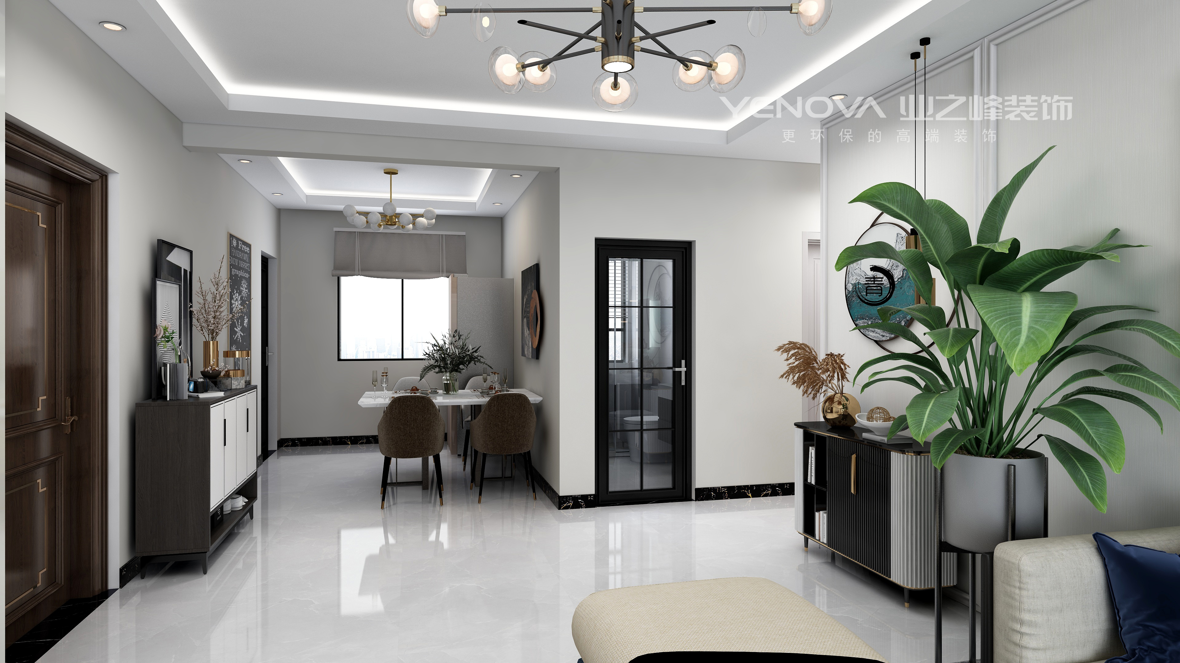 现代简约中色彩常常跳跃出来,但是女主人喜欢温和典雅的空间,所以本设计注意颜色的过度,尽量避免了突兀色彩的出现,以满足女主人的要求。