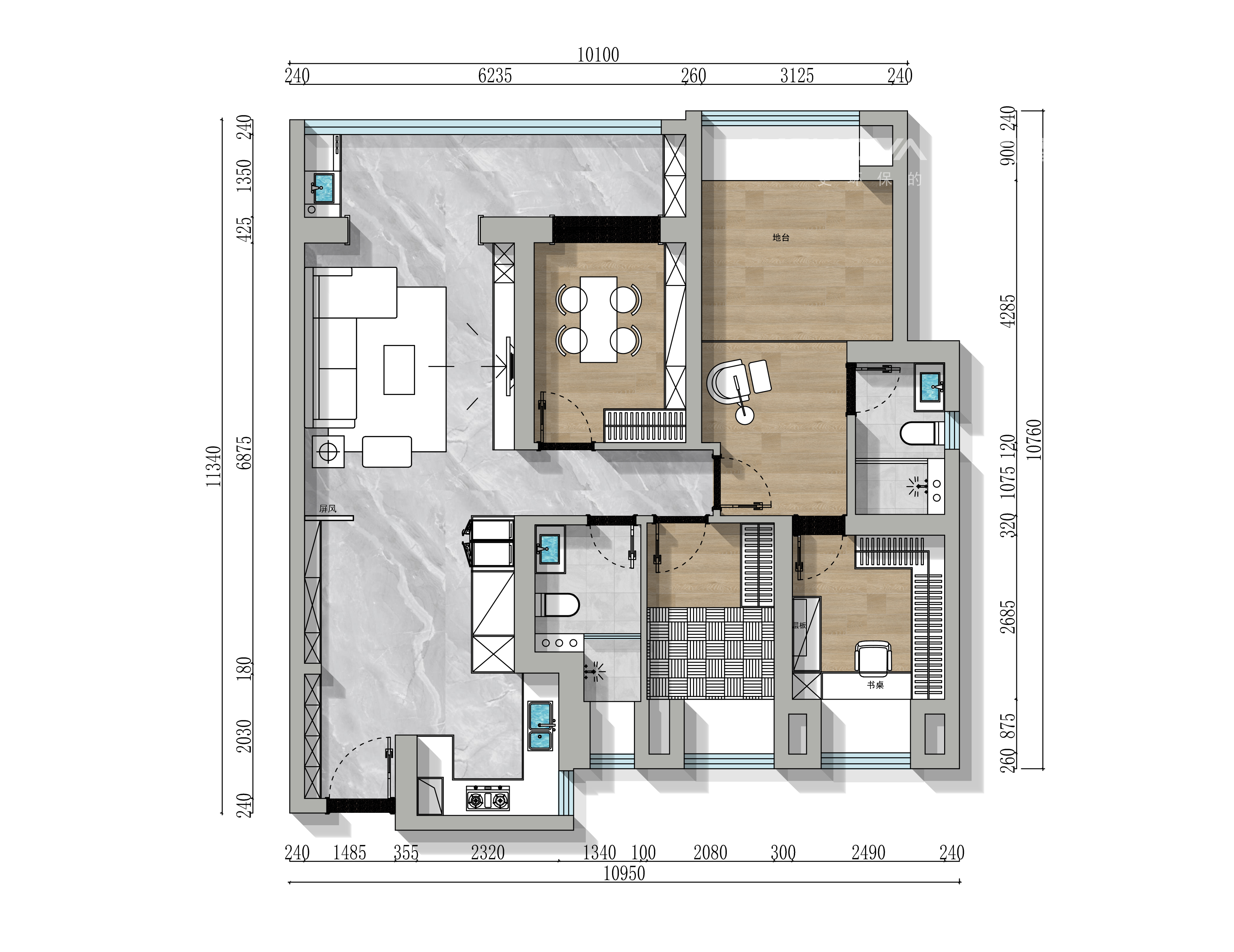 小区:招商和樾 面积:117㎡ 户型:三居 风格:新中式风格