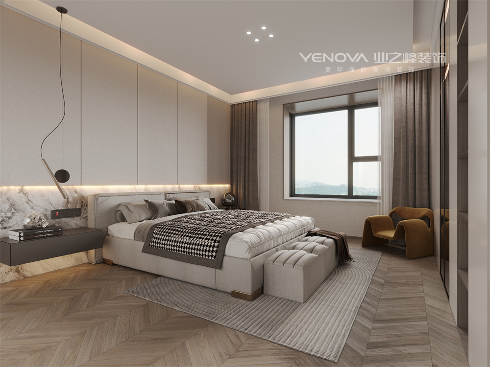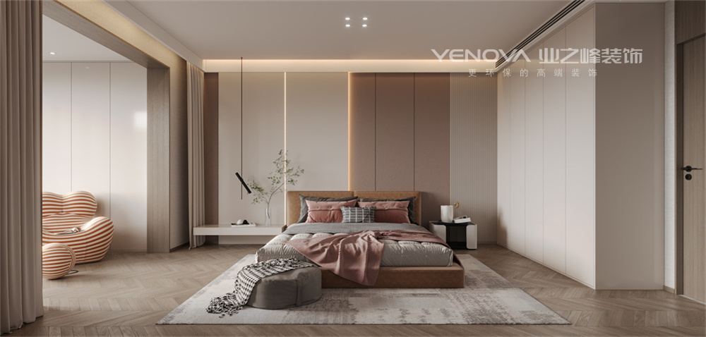 本设计做到了以简洁明快为主要特色,重视室内使用功能,强调室内布置应按功能区分的原则进行,家具布置与空间密切配合 并且使室内布置清爽、有序,富有时代感和整体美,体现了现代派所追求的“少就是多”的简约化设计。