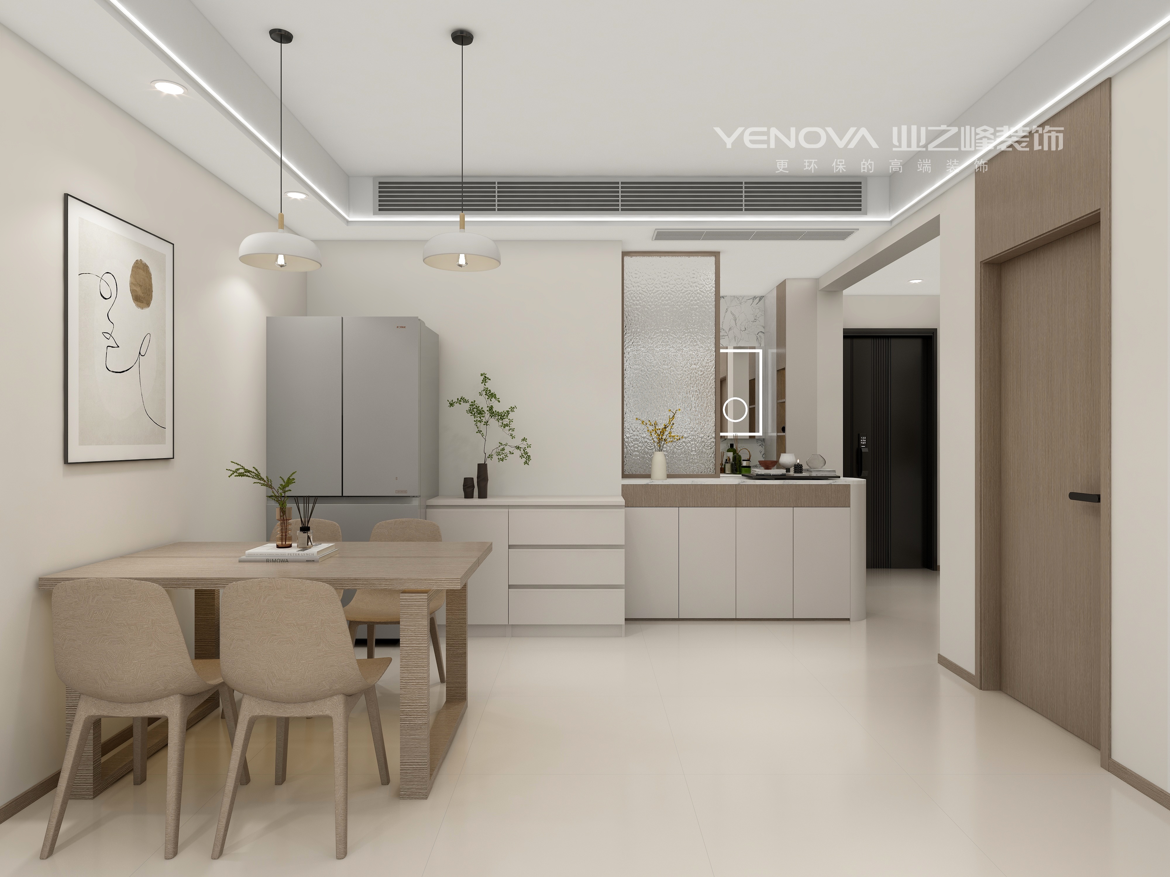 餐厅的木质家具使整体风格更加有质感,双开的冰箱满足储藏,客厅的设计也时尚大气,电视背景墙的一侧满足收纳,搭配浅咖色的单人沙发使空间更加明亮。