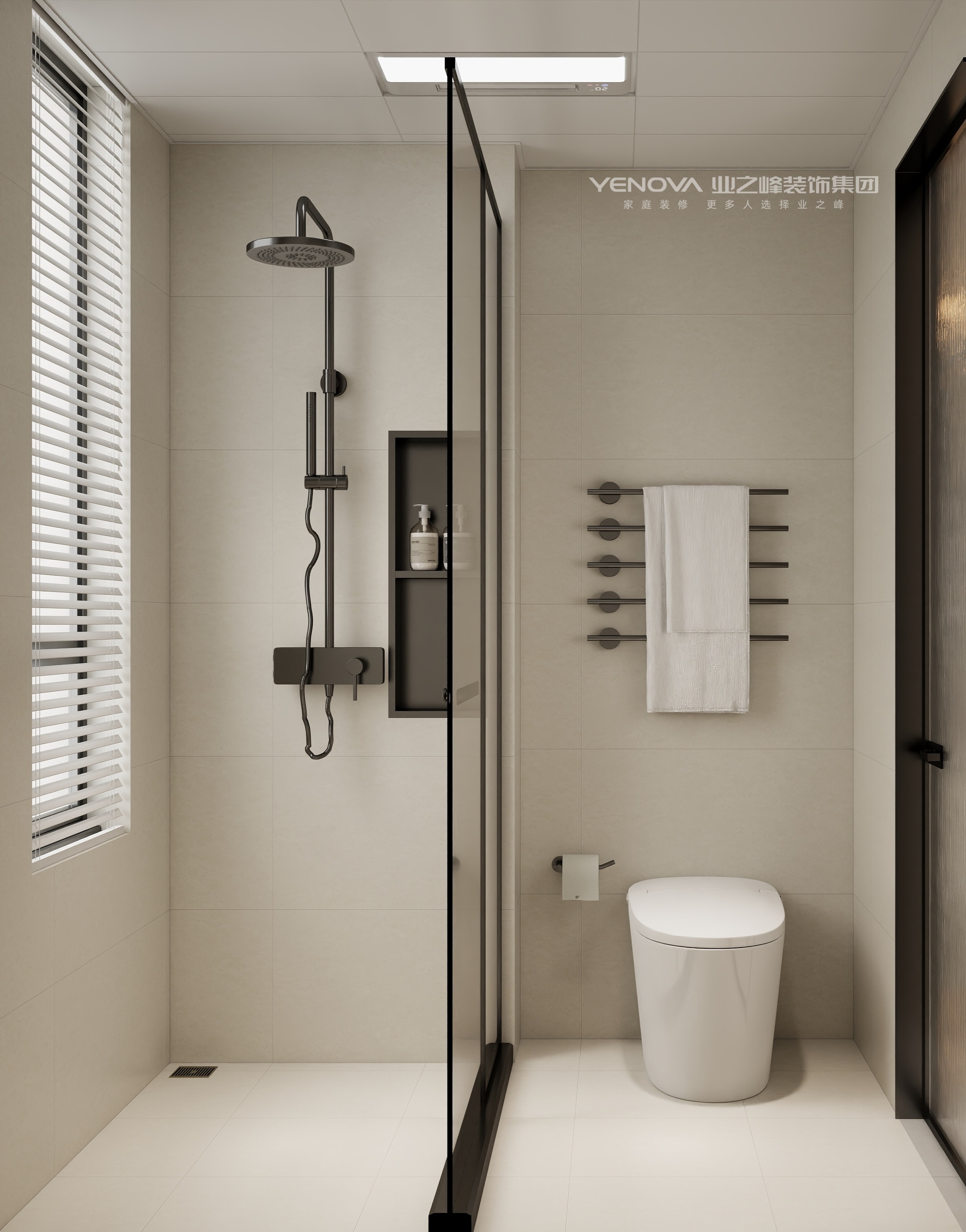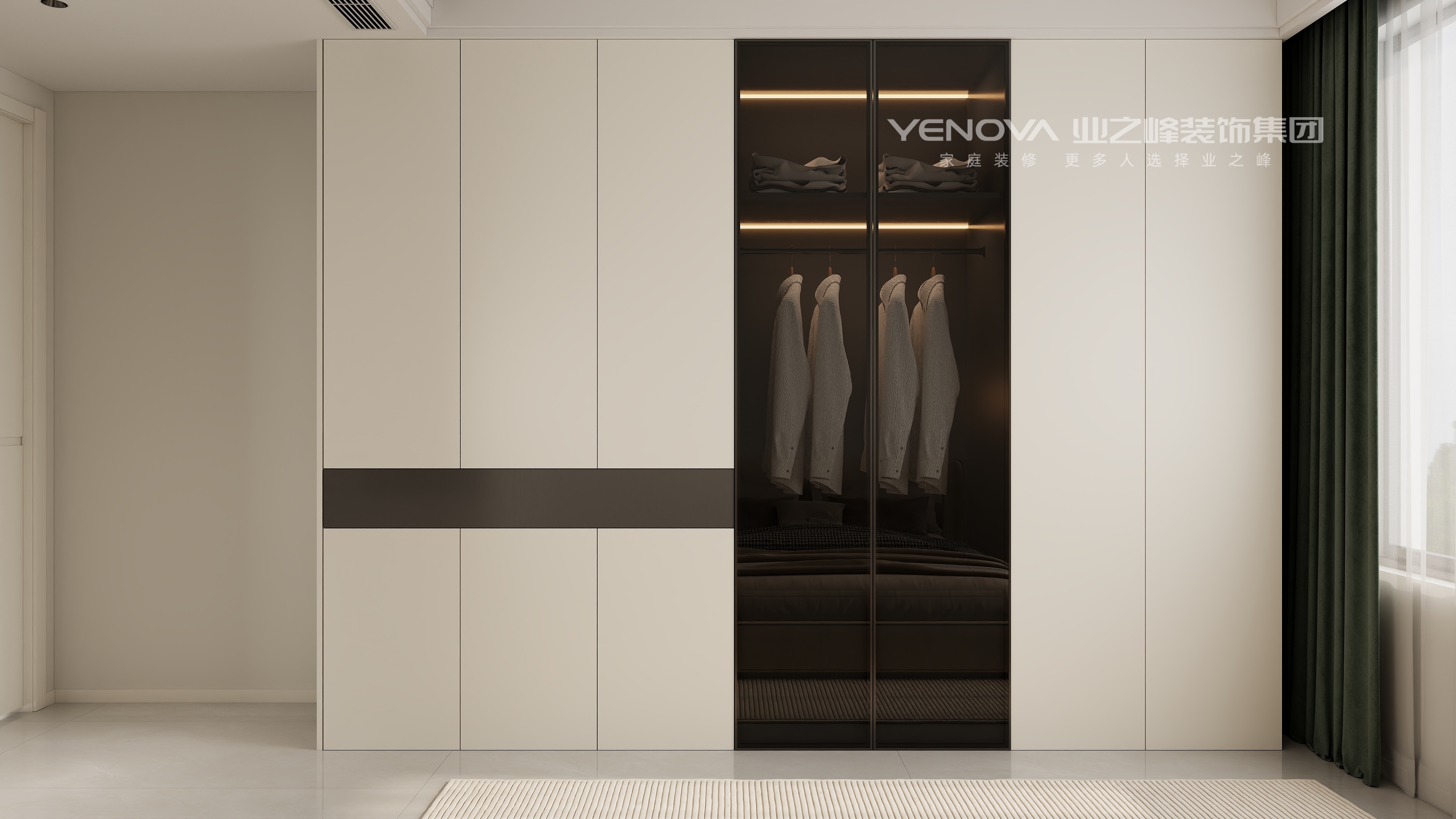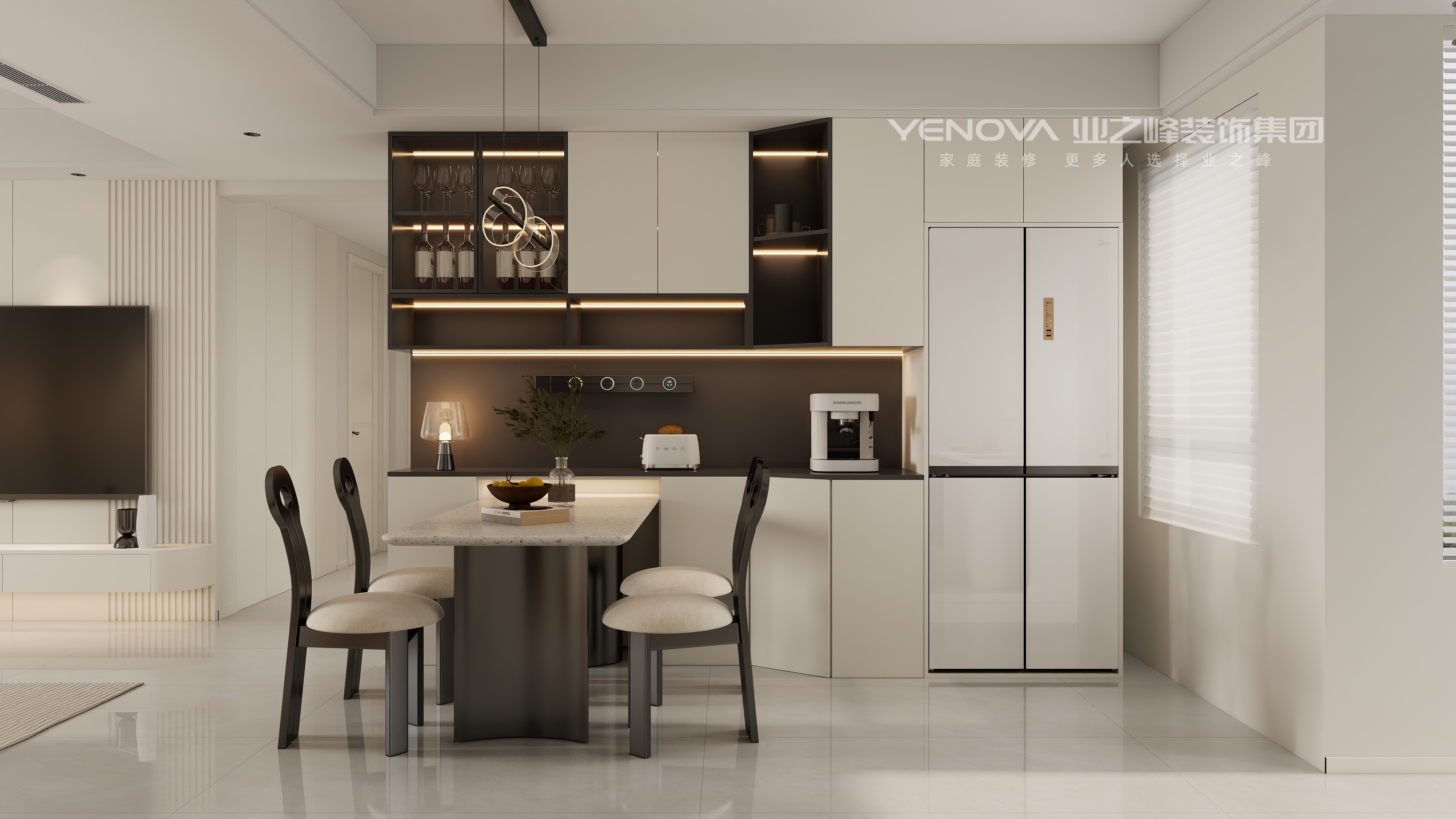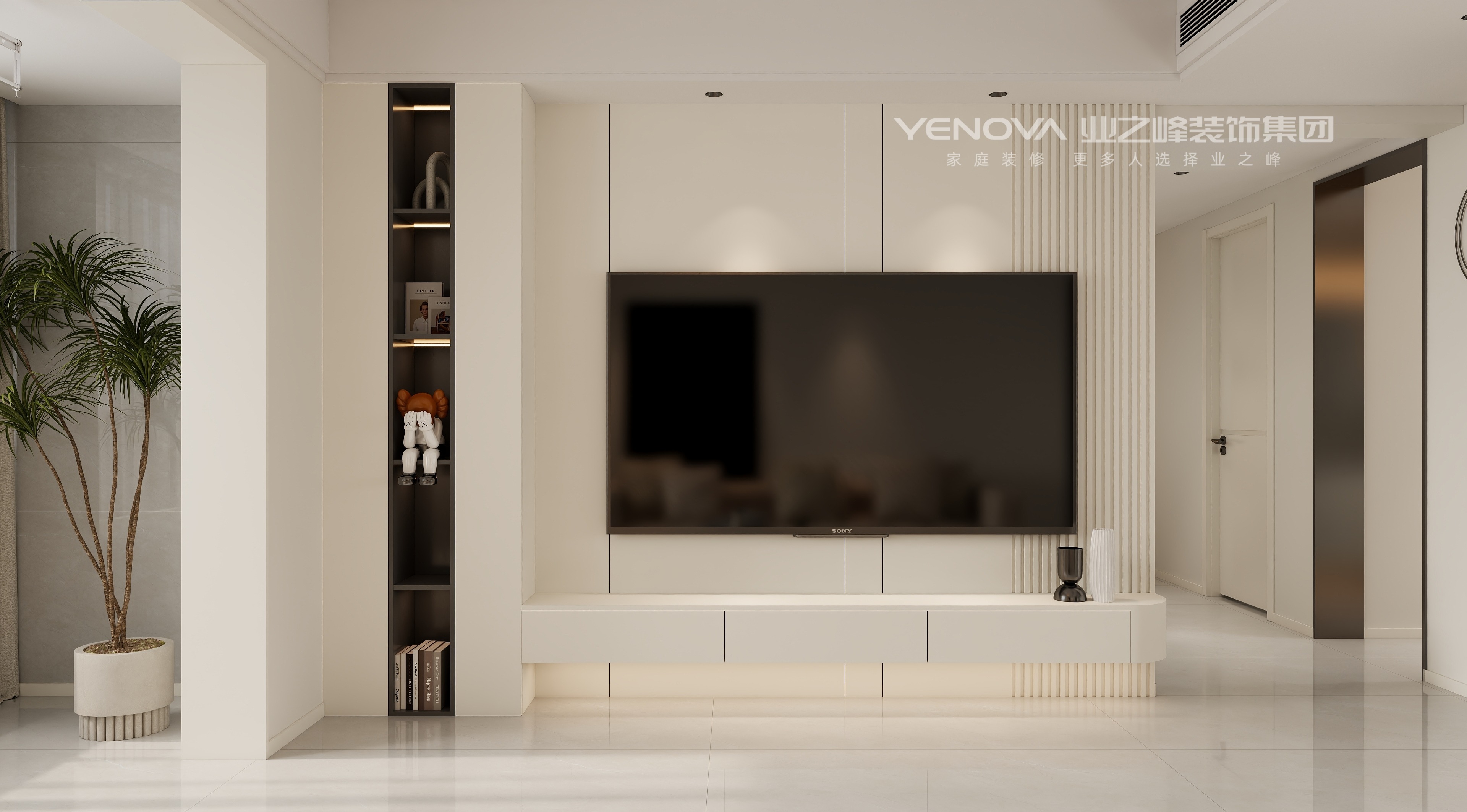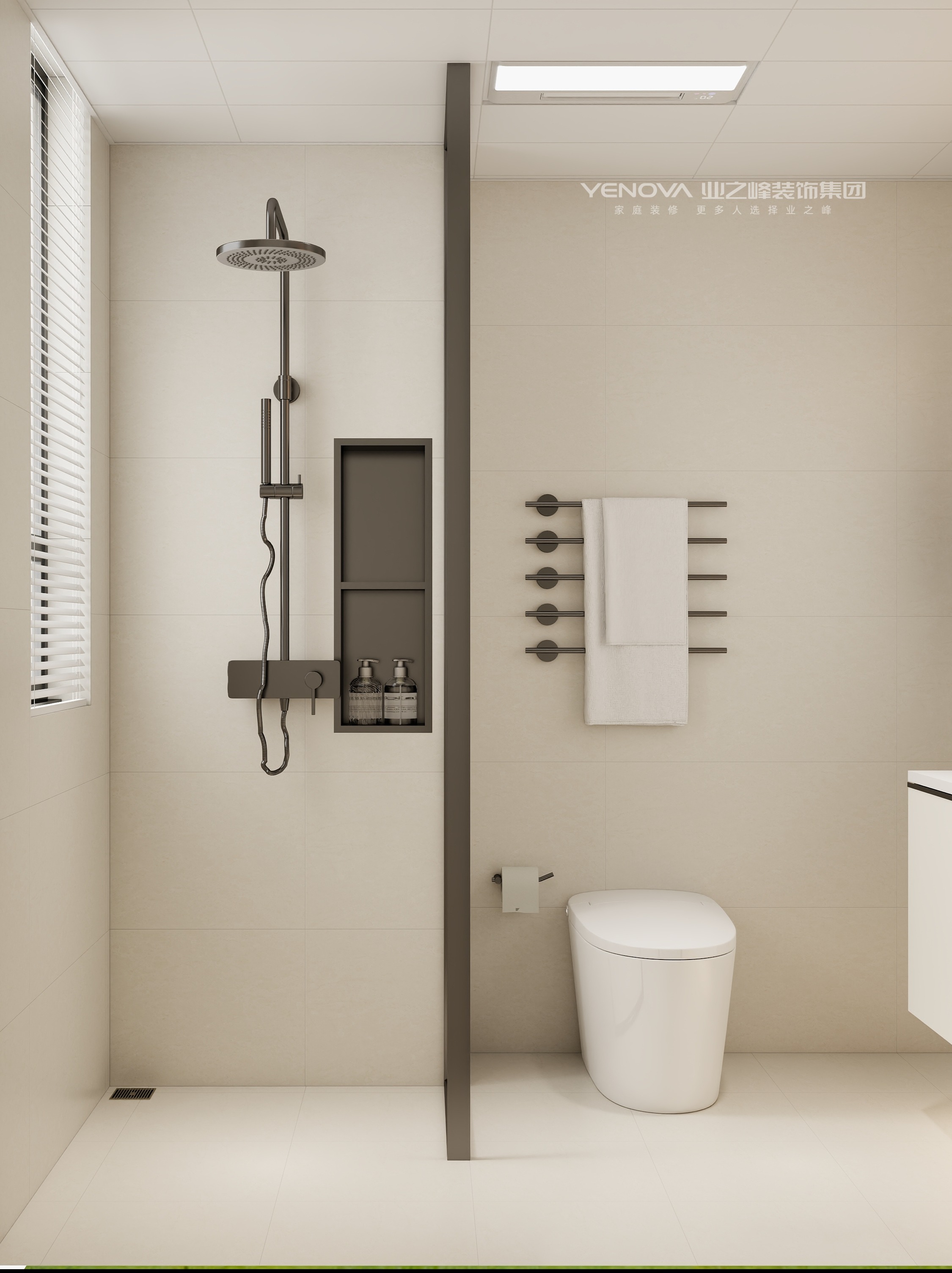 以简约现代风格为主。色彩上,大面积采用米白、浅灰等浅色调,营造出柔和、通透的氛围,局部搭配深棕、黑色,增添层次感与精致感。