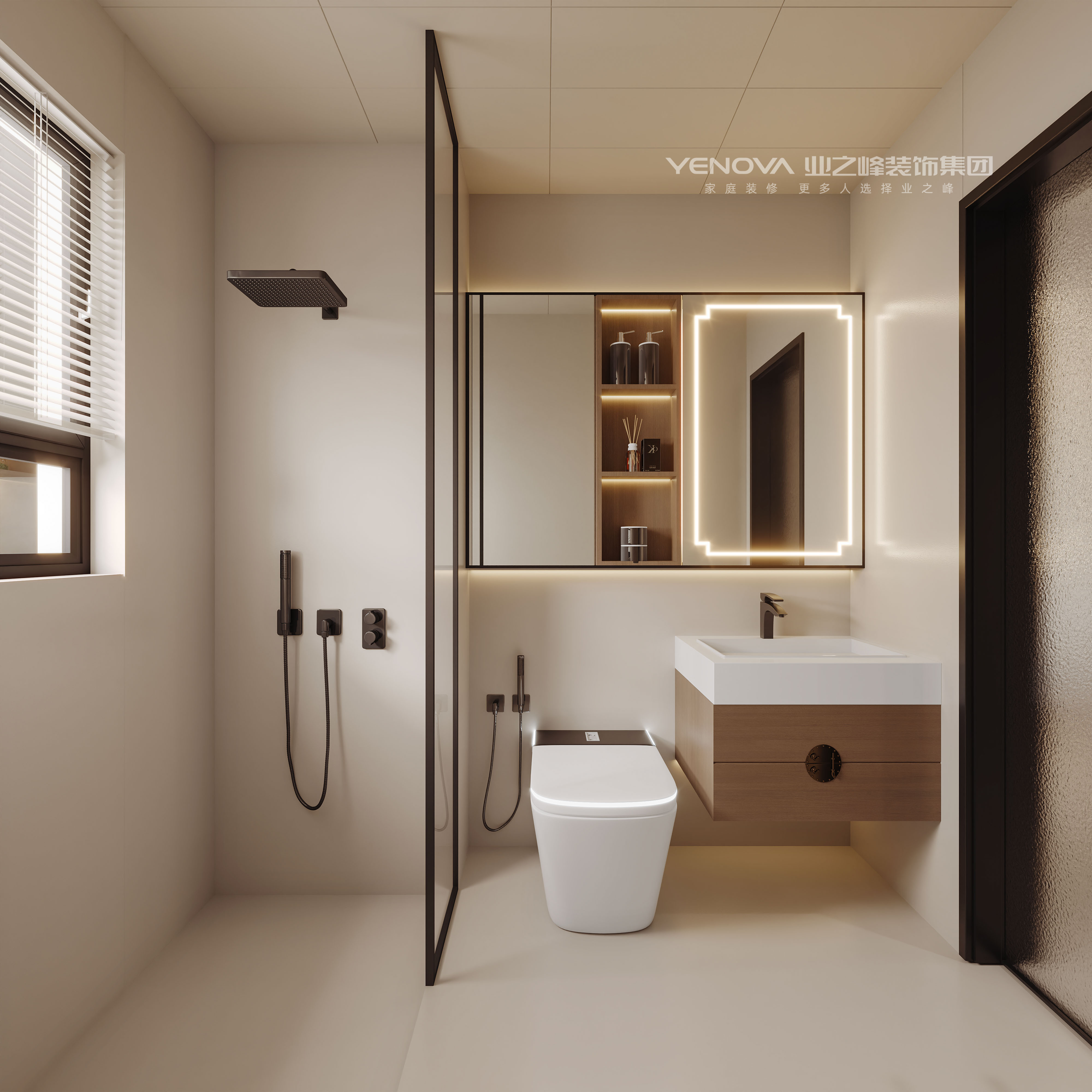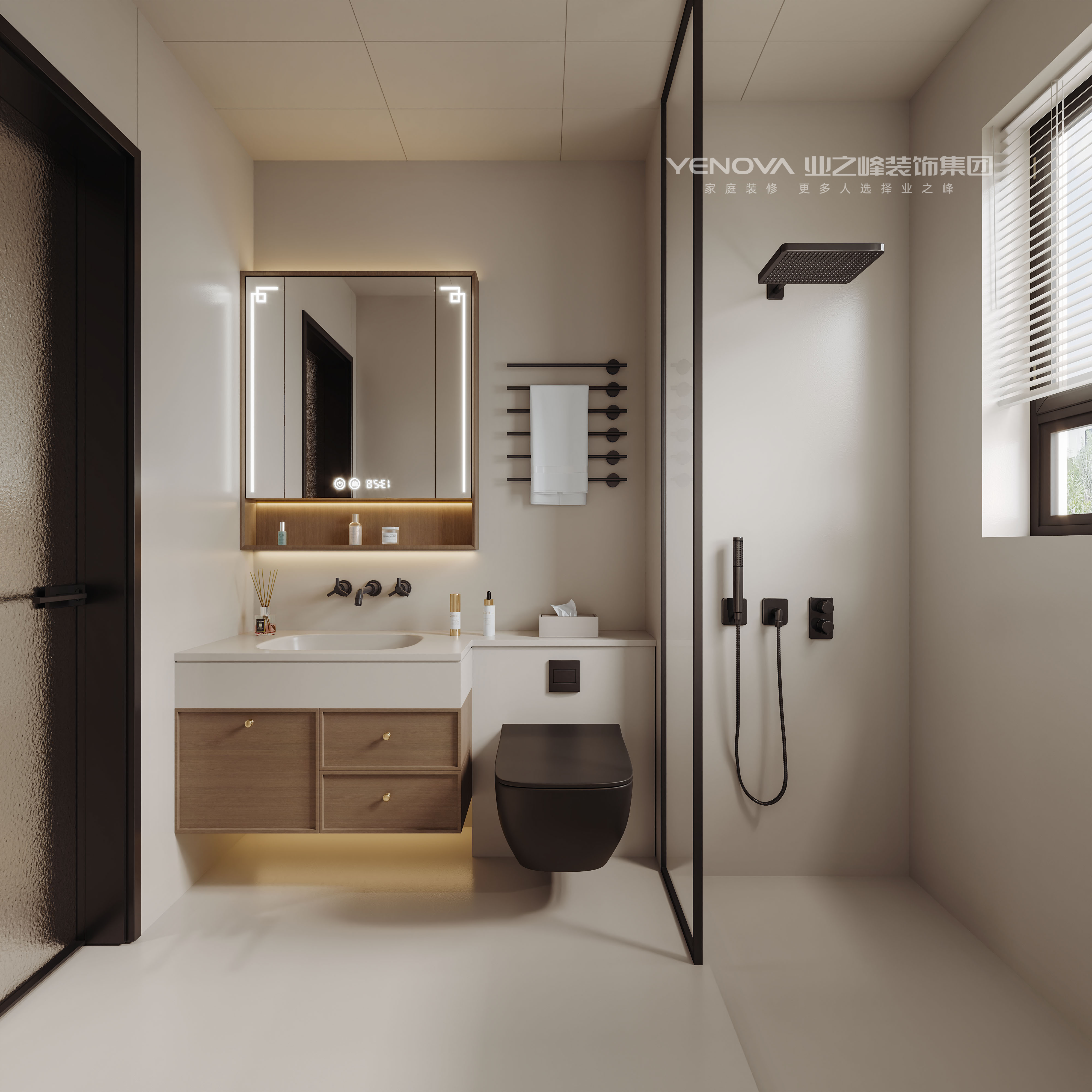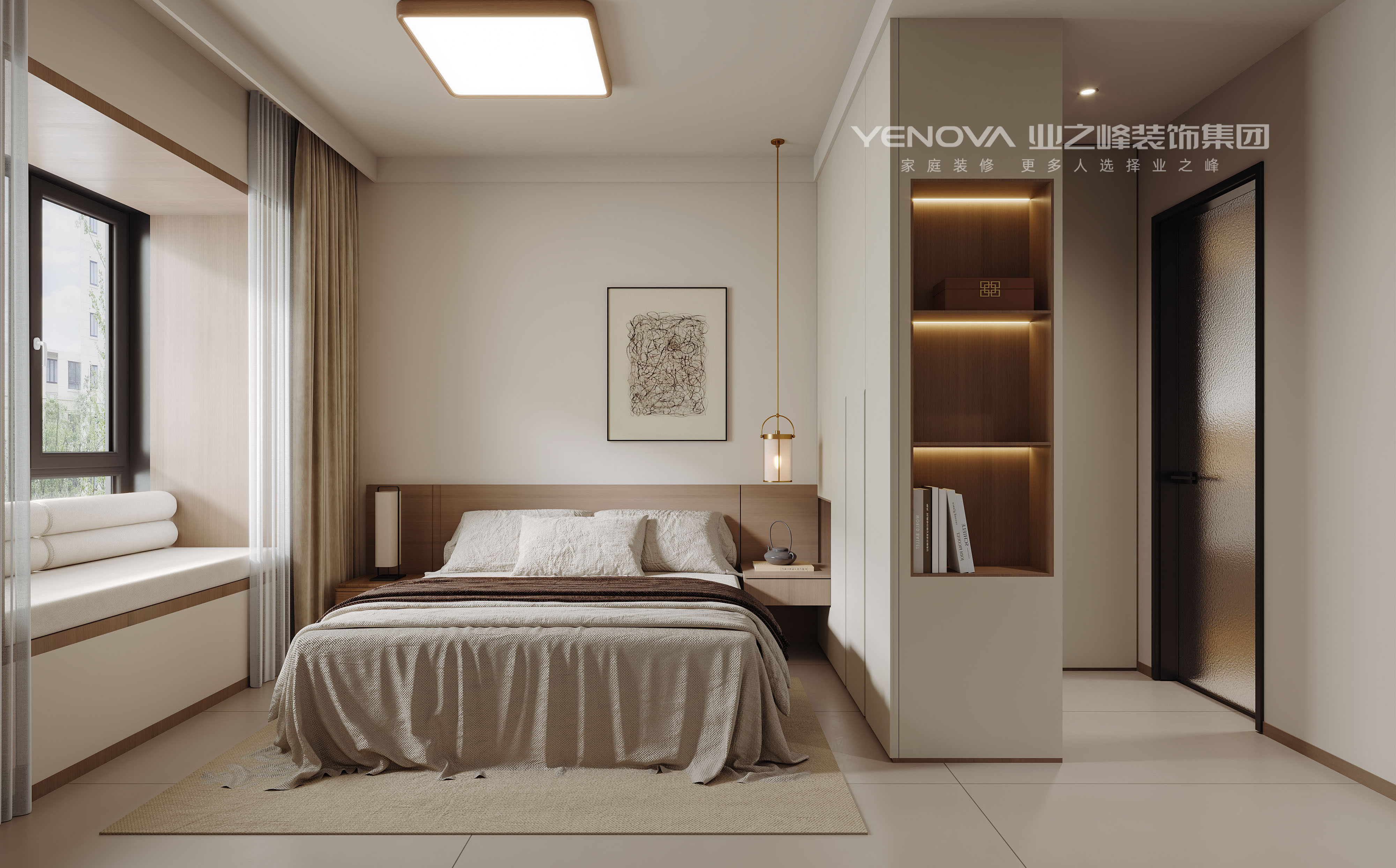 以新中式为核心,木色为底,融入屏风、扇形置物架等中式元素,借现代灯光与通透布局,勾勒典雅东方意境 。