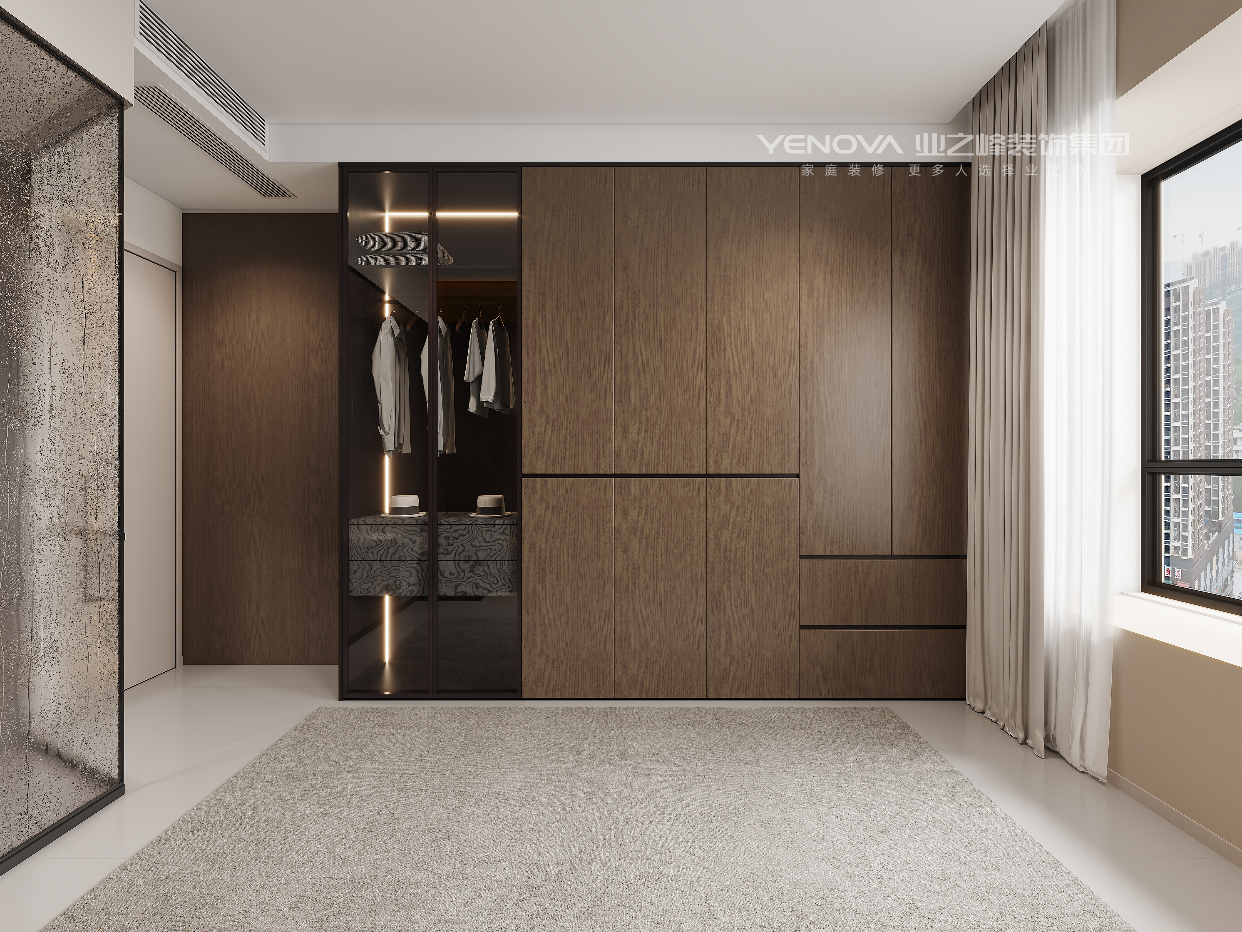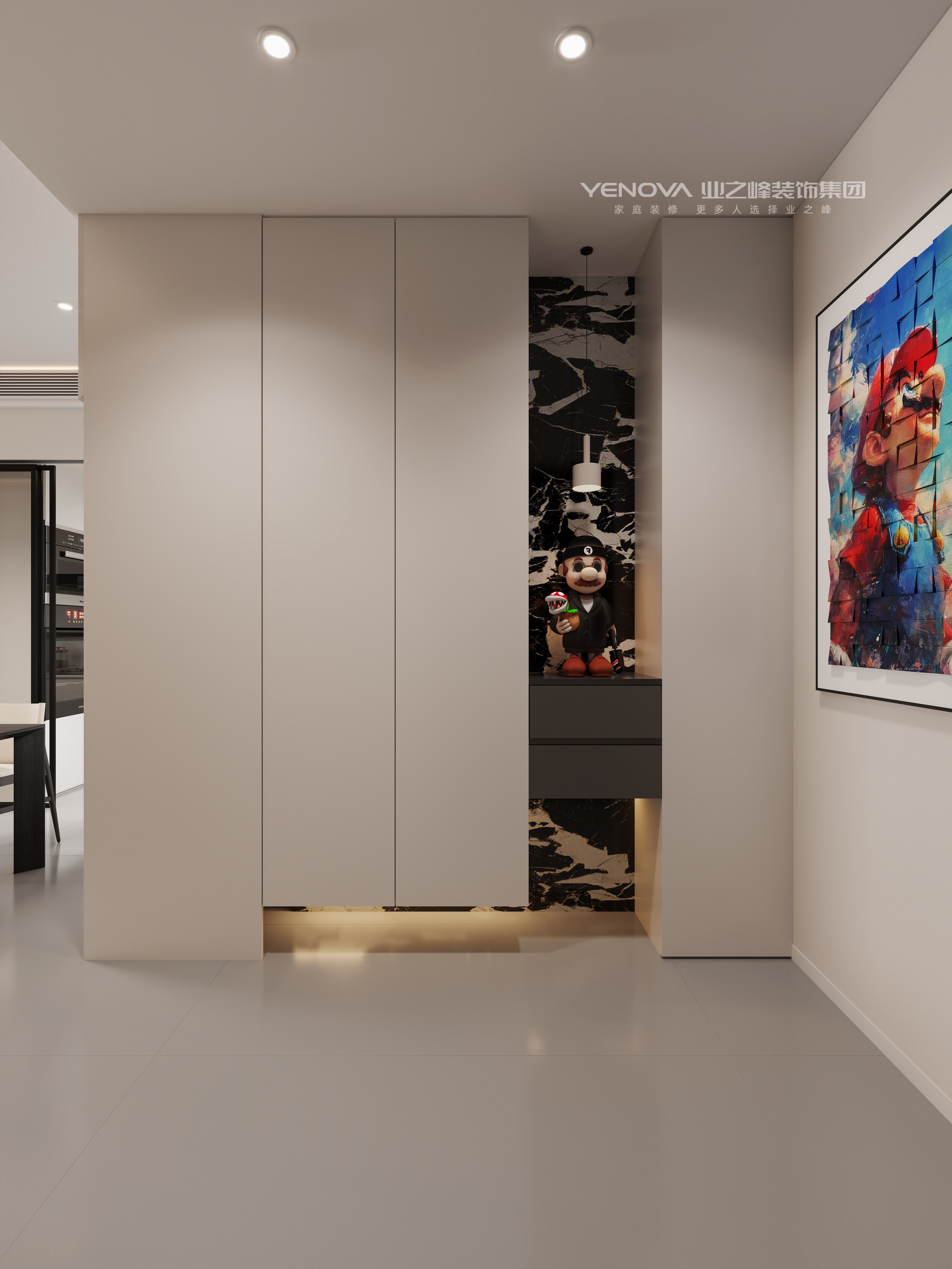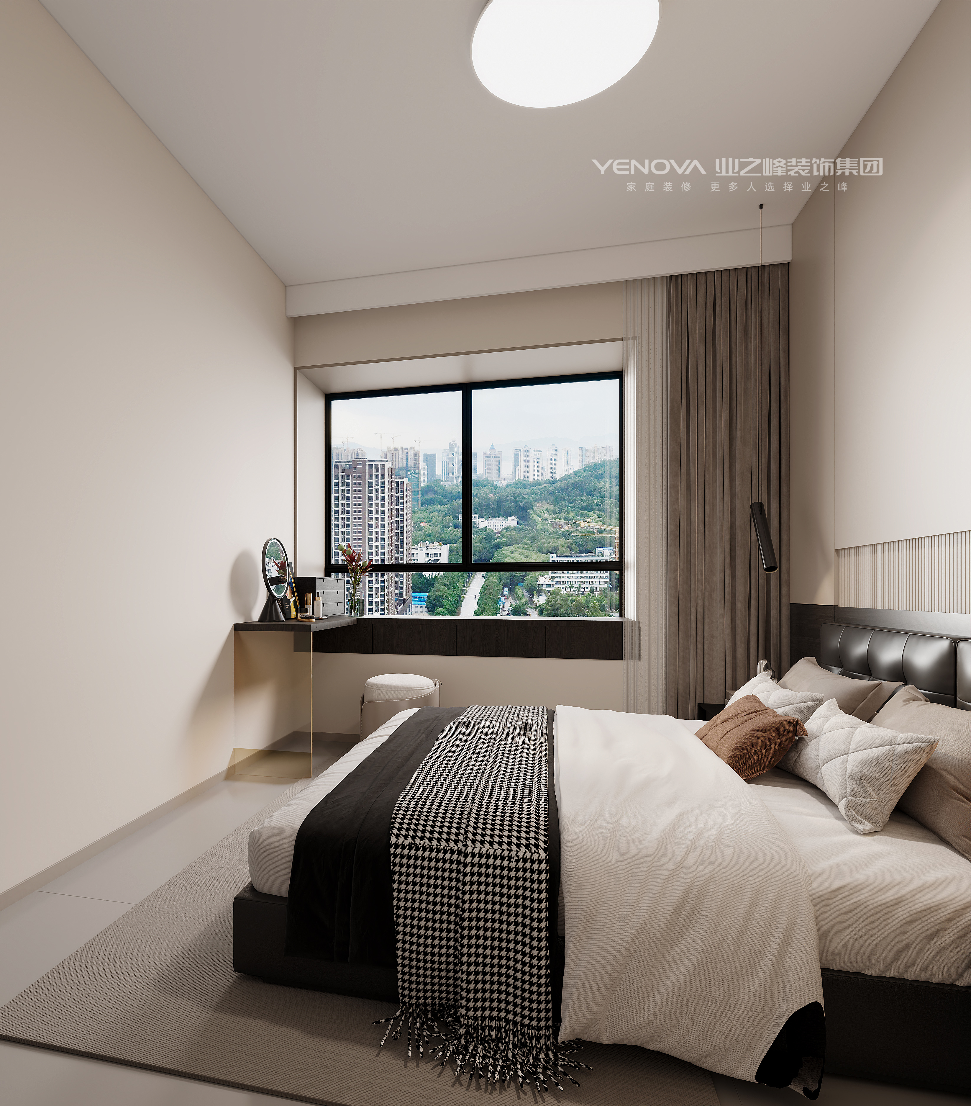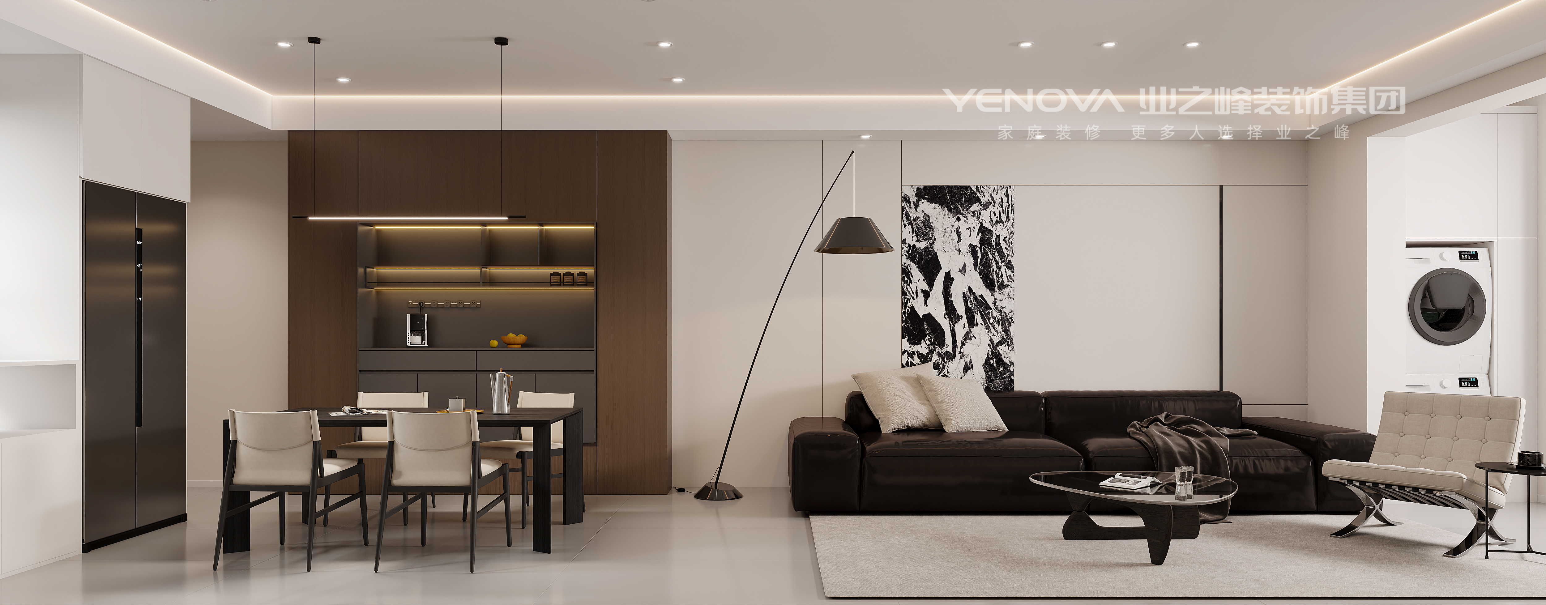 现代简约:以黑白棕为基调,借简洁线条、嵌入式收纳与线性光影,塑造通透、实用的现代居住空间 。