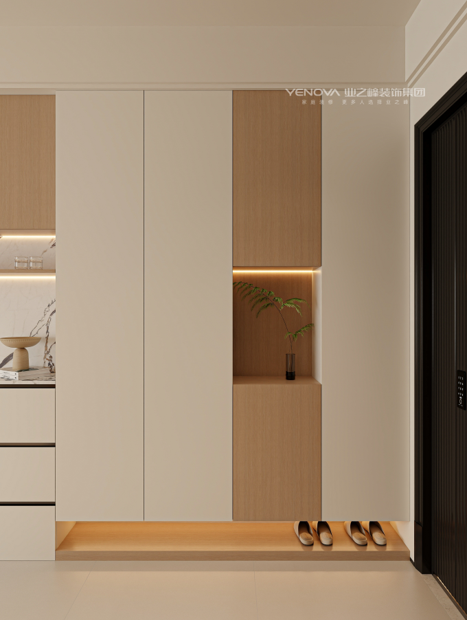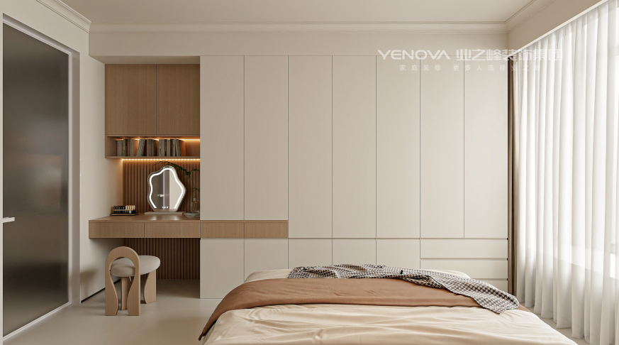 整体设计以 “温柔包裹生活” 为逻辑,通过全域柔和色调、精细化定制收纳与光影的细腻烘托,让家成为卸下疲惫、拥抱治愈的全域容器,完美平衡了简约美学与日常功能的共生。