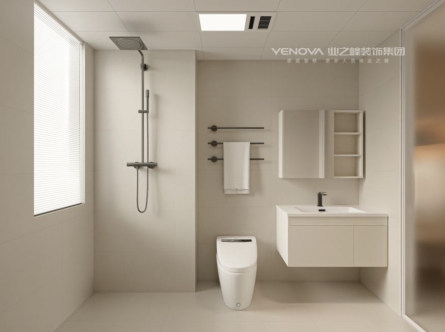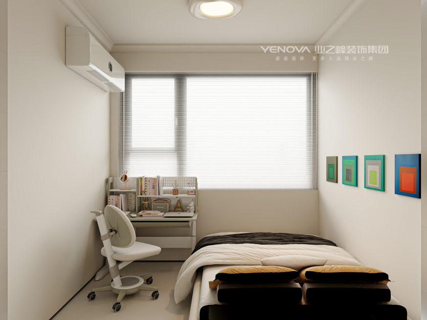 卧室空间延续柔和基调,主卧将衣柜与梳妆区一体化设计,木色细节与暗藏灯带烘托出休憩的温馨感;儿童房以色彩挂画点亮空间,嵌入式书桌兼顾学习与收纳,为成长时光营造舒适小天地。卫浴间采用同色系瓷砖营造整洁感,智能洁具与暗藏灯光的结合,让洗漱场景既便捷又具品质感,玻璃隔断在划分干湿区的同时,保持了空间通透。