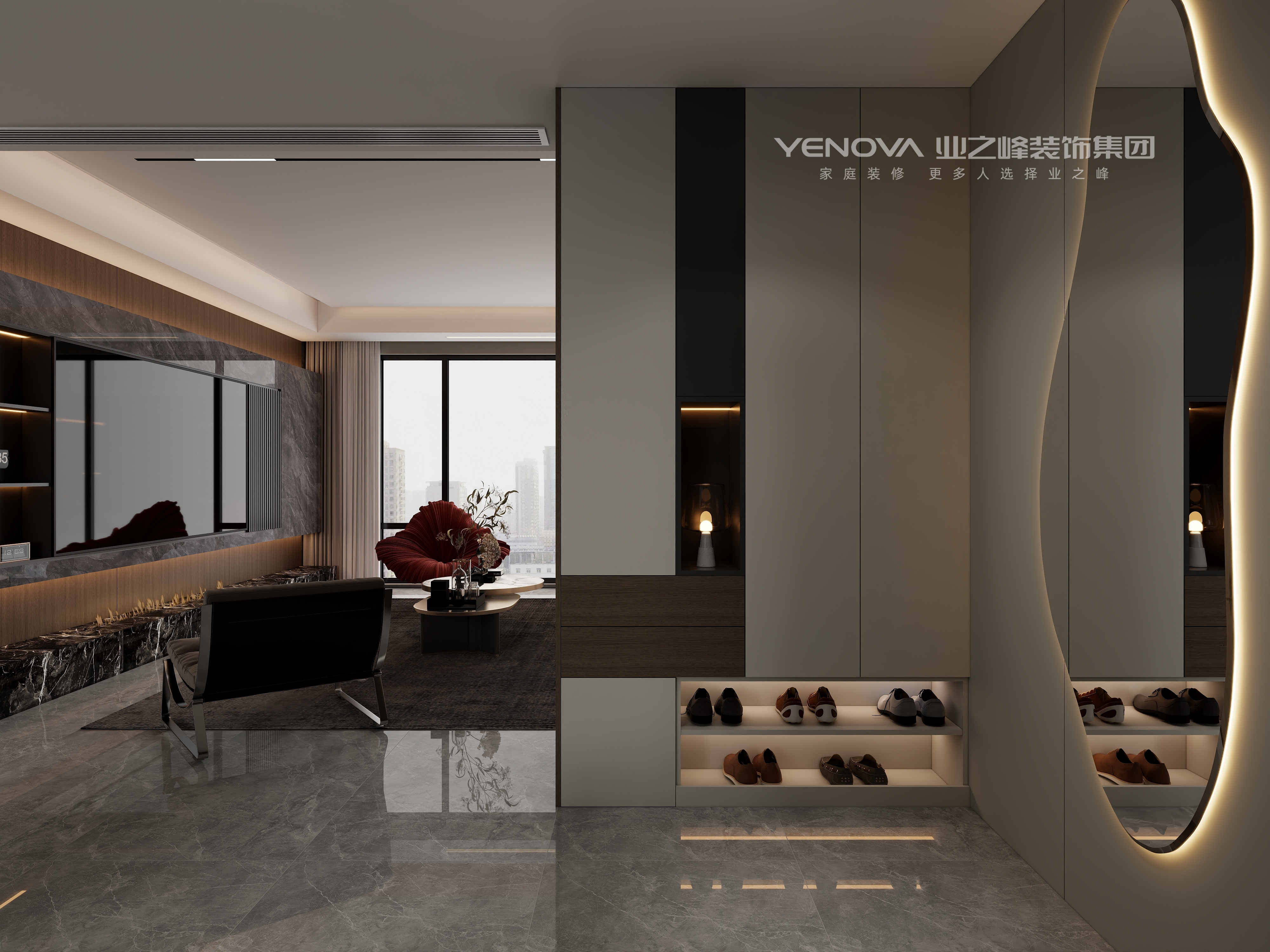 整体设计通过深色系的质感表达、材质的细腻碰撞与功能的精细化布局,让家成为都市生活中兼具品质感与舒适感的私属领地,完美平衡了现代轻奢美学与日常使用需求。