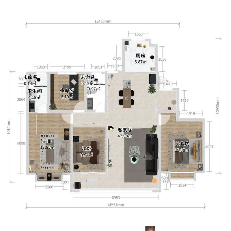 核心特征:线条简洁,以木色、灰调为主色调,融合大理石、金属材质,强调空间通透与功能实用。