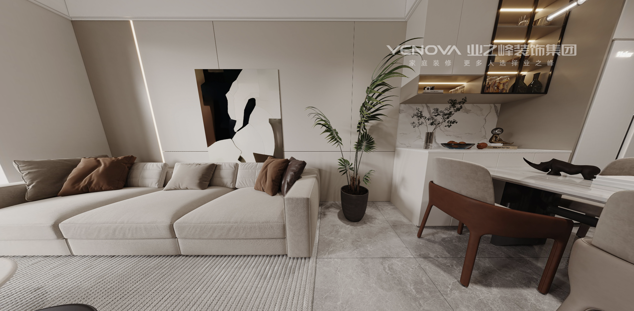 以简洁线条、低饱和色调为核,最大化 145㎡通透感,平衡功能收纳与日常舒适。