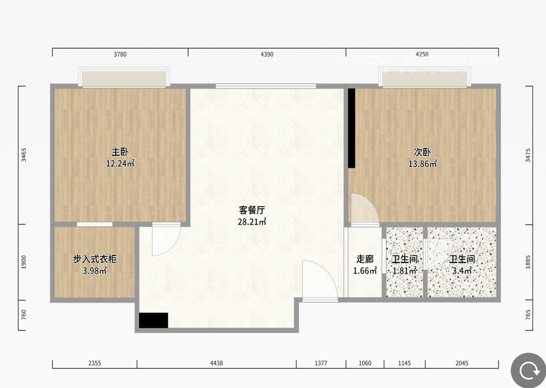 小区:博雅金融广场 面积:70㎡ 户型:二居 风格:现代简约风格