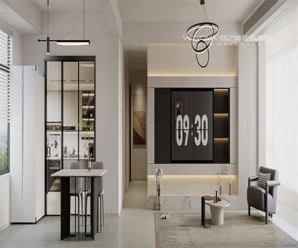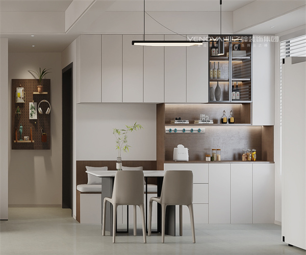 根据客户的要求,空间布局简洁流畅,重点在室内的收纳空间上。色彩选择时以中性色为主调,白色和木色,还有少量低饱和度进行点缀,营造了宁静但是不失活力的氛围。餐厅为了节省原本不大的面积,选择了柜体卡座搭配餐桌,留出了过道。电视柜在保证收纳的同时也做了造型,提升了美观程度。选择灯光时设计注重了简约,以隐藏式光源与顶灯提升了空间的明亮。给业主打造了舒适、高效且经久耐看的居住环境。