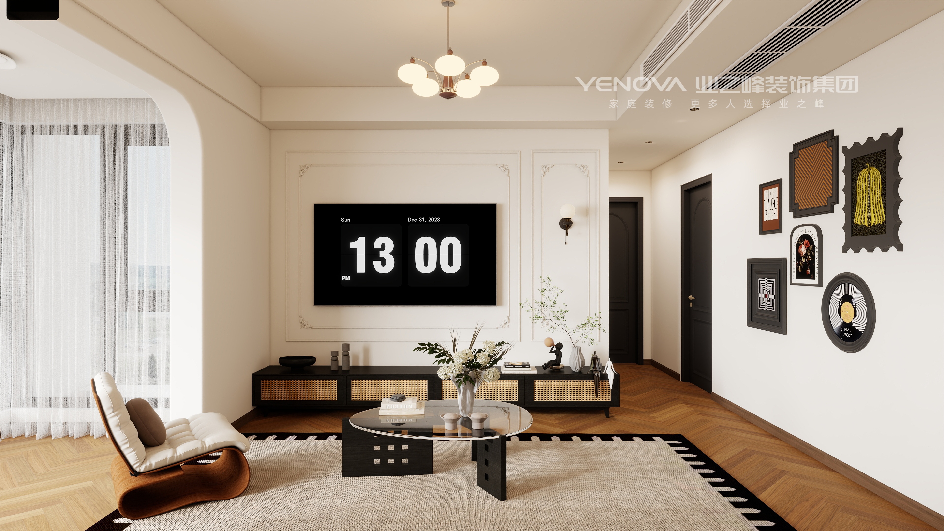 本客厅设计以现代简约风格为基调,融入复古与自然元素,打造出舒适且富有格调的空间。