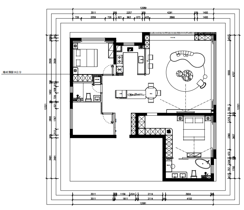 通过家具、材质的隐性分区(如地毯、地面材质变化)划分功能区,既开放又有层次。