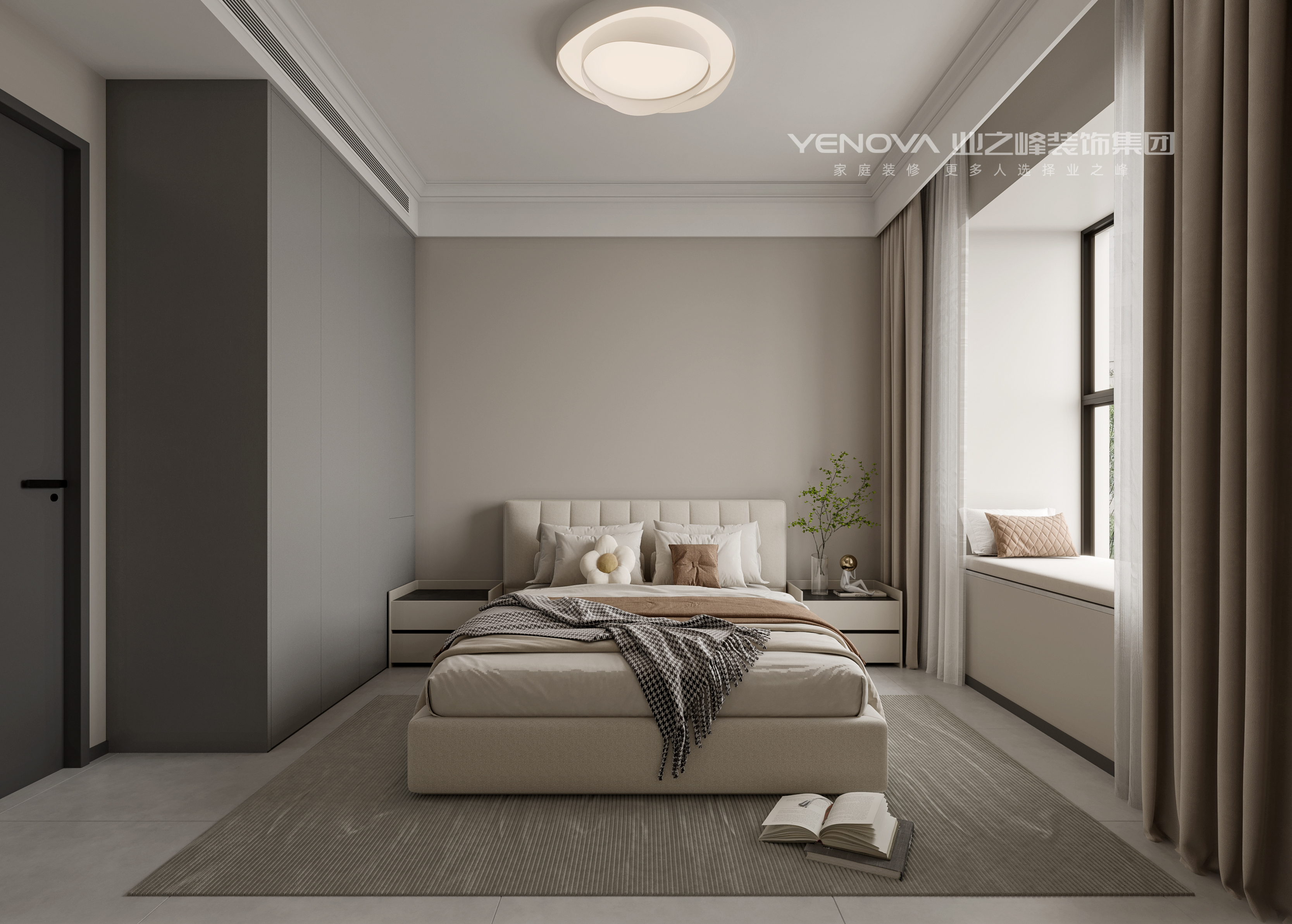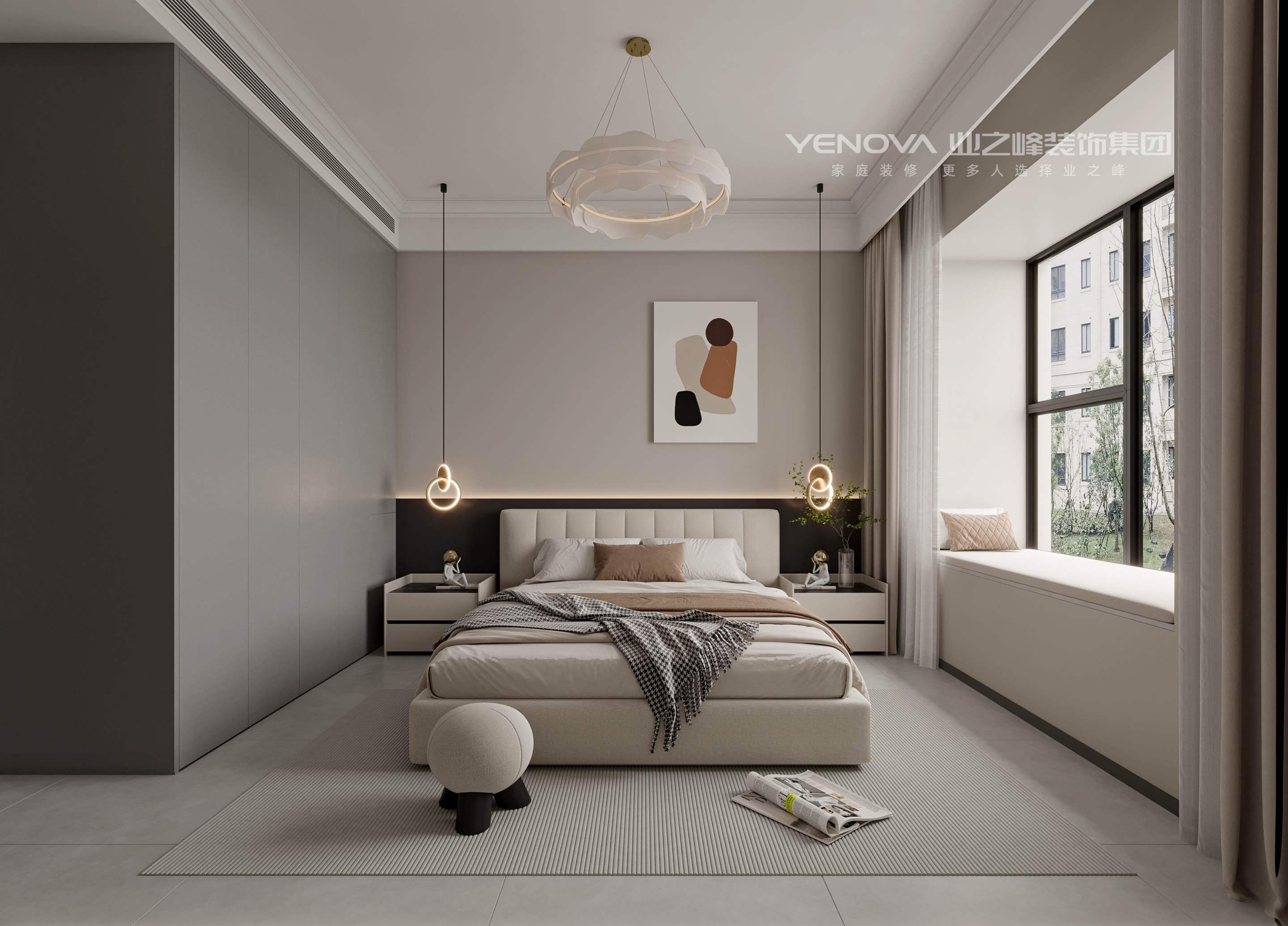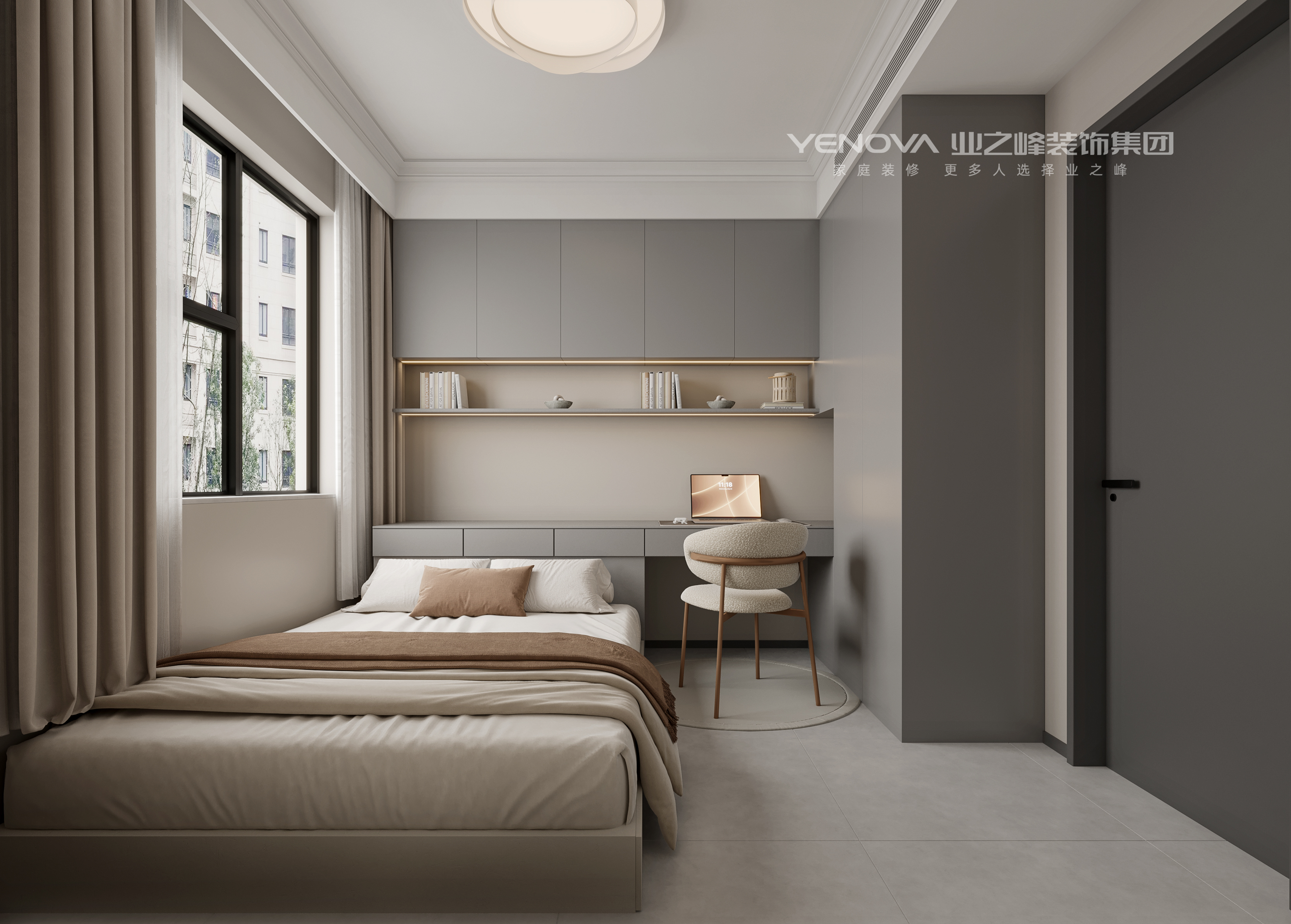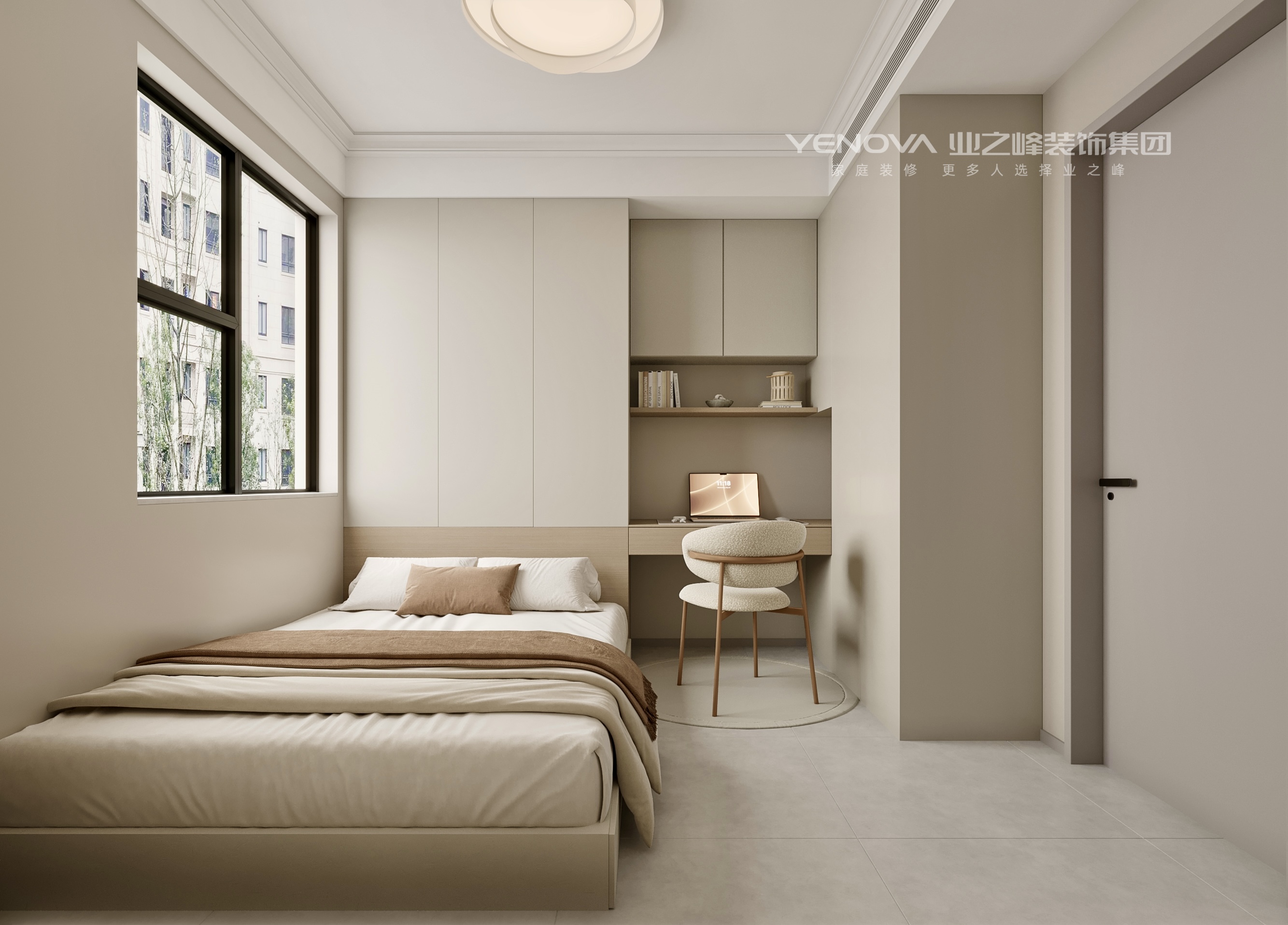 卧室空间聚焦 “舒适休憩” 核心需求,同时兼顾个性化与收纳性。次卧(或书房)采用一体化设计,床、书桌与吊柜有机融合,浅灰与米色的柔和色调搭配充足自然采光,营造出静谧且适合阅读工作的氛围。主卧更显雅致,大面积收纳柜体满足储物需求;床头区域以艺术挂画、造型灯营造氛围,飘窗与针织毯、艺术摆件、绿植等软装搭配,让空间兼具温馨与艺术感;多层次灯光设计(主灯、 bedside 吊灯)更添浪漫松弛感,打造出能卸下疲惫的私享休憩场域。