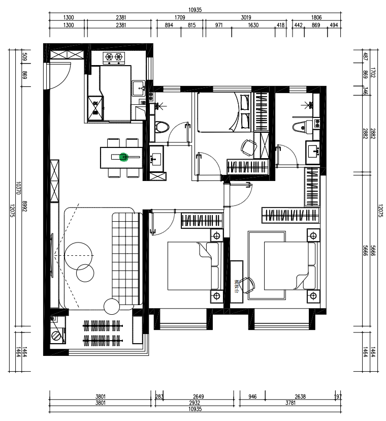 小区:旭辉国辰府 面积:117㎡ 户型:三居 风格:现代简约风格