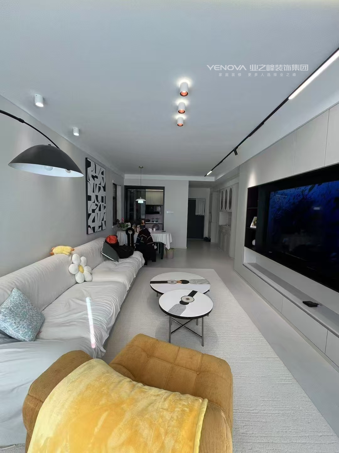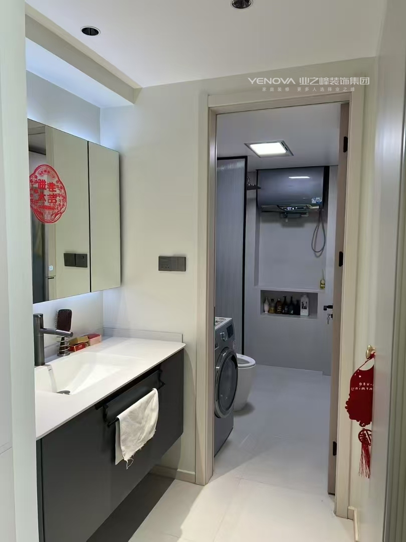 96平三居室现代简约风装修,以黑白灰为主色调,线条简洁,布局实用,营造出高级舒适的居住空间。