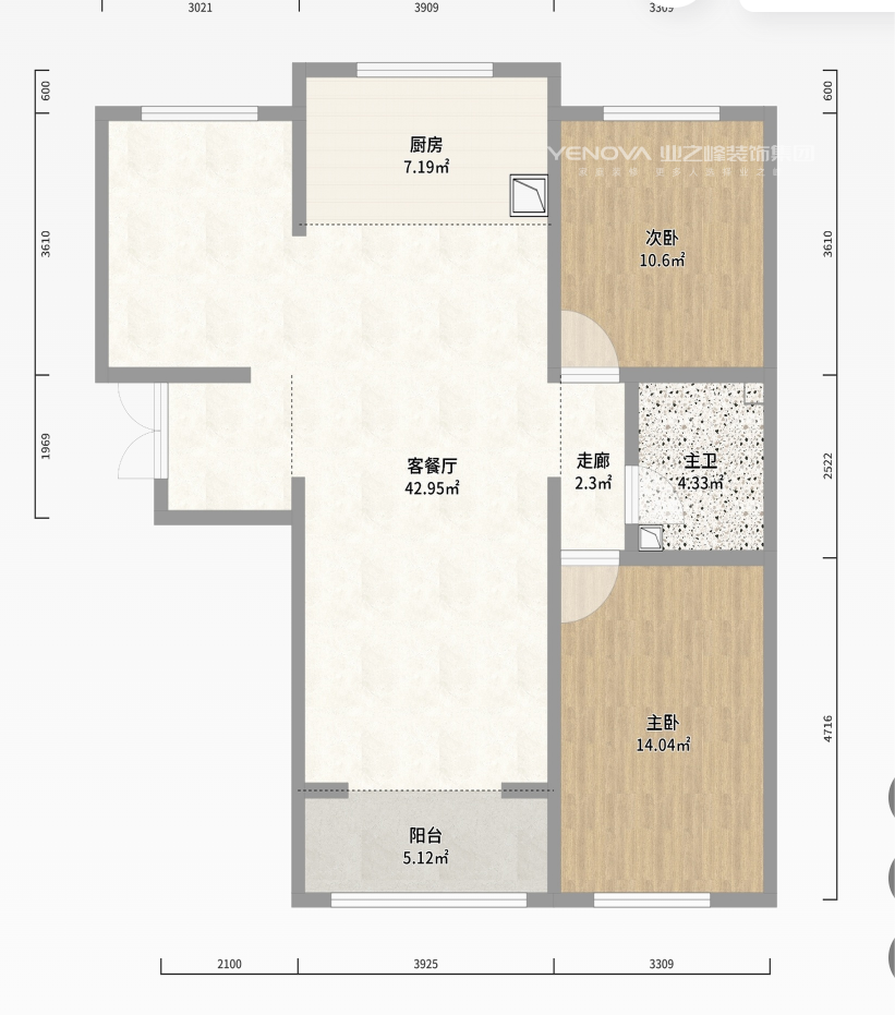 小区:诚馨天悦 面积:96㎡ 户型:二居 风格:现代简约风格