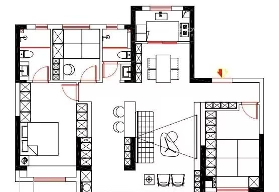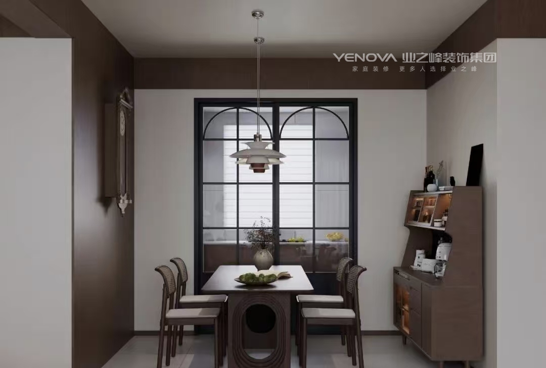 本案位于西宁市城中区,是一套四室两厅两卫的户型。业主想让客餐厅空间变得更开阔一些,经过协商最终将客厅与卧室之间的墙体拆除,保留承重部分,将卧室改做开放式茶室,增大采光空间,使得客餐厅空间视野变得十分开阔。