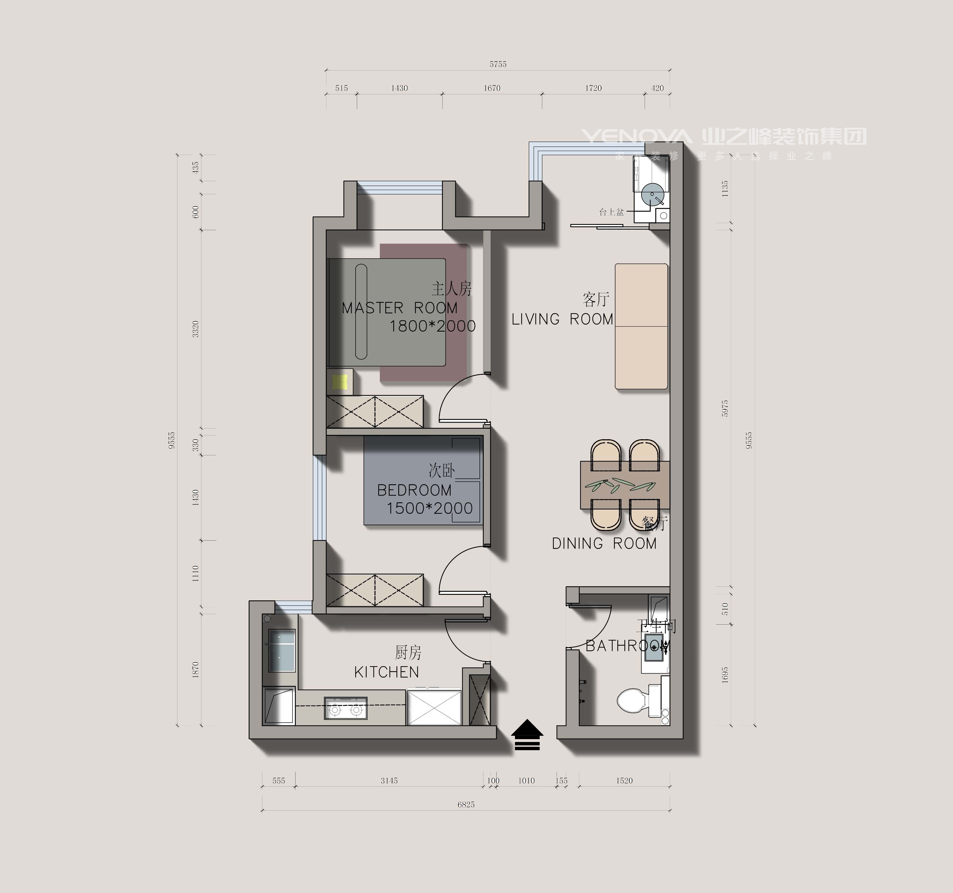 小区:三镇中心 面积:60㎡ 户型:二居 风格:现代简约风格