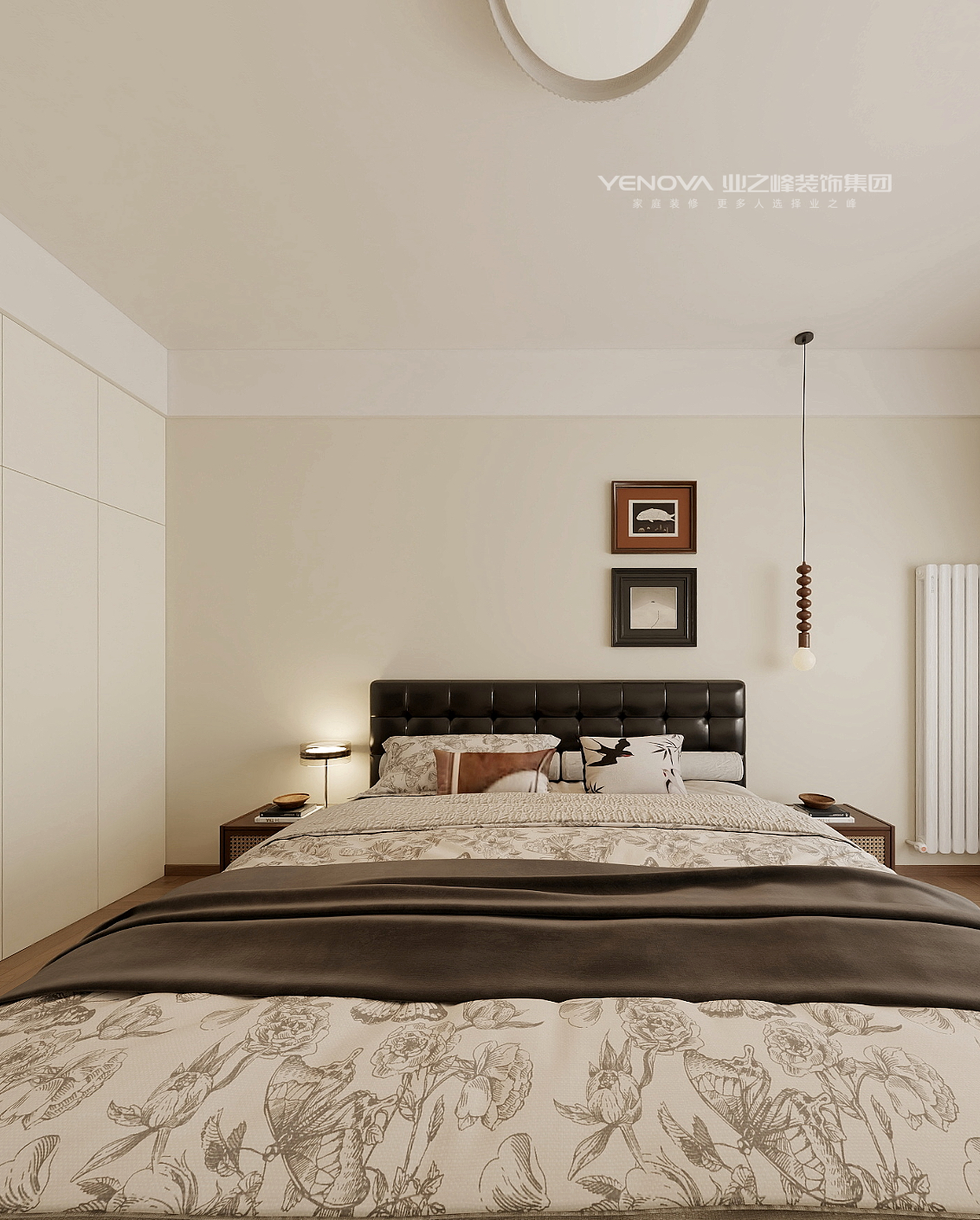 客厅以奶油色墙面为背景,一张胡桃木或原木色的矮柜电视柜,搭配布艺或皮质沙发。一张藤编元素的昌迪加尔椅和一块亚麻地毯即可定调。装饰画选择抽象或复古海报,绿植选择琴叶榕、龟背竹等形态优美的品种。卧室需要营造静谧、助眠的环境。亚麻床品、羊毛盖毯是首选。床头可选用小吊灯或壁灯,解放床头柜空间。衣柜门可尝试藤编门板,增加透气感。餐厅可选择一款飞碟灯或PH灯。餐桌椅组合可采用现代简约餐桌搭配中古味餐椅(如伊姆斯椅)。厨房橱柜可尝试奶油色门板搭配胡桃木色台面或开放格。