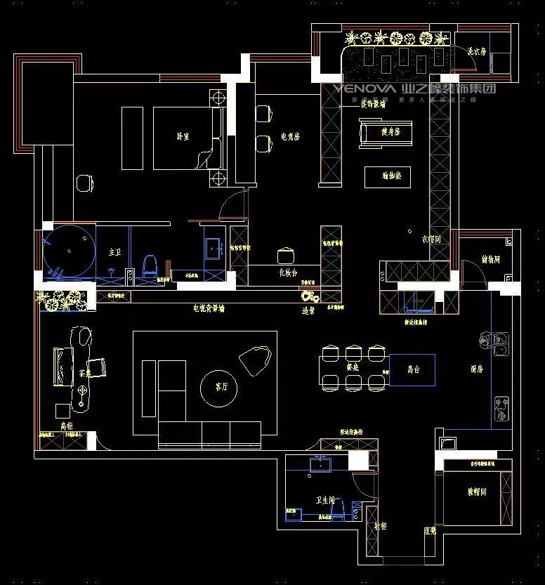 小区:水果湖广场 面积:150㎡ 户型:四居 风格:法式复古