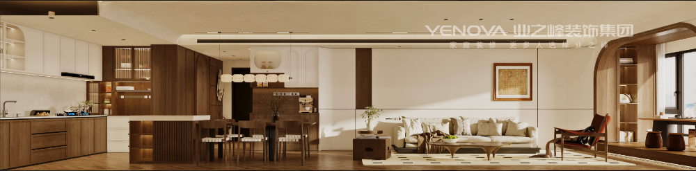 开放式布局打破传统隔阂,采用开放的客餐厨一体式设计,确保空间流动性与通透感,这是对现代生活方式的呼应。通过低矮的家具轮廓、扁平的线性吊顶或贯穿空间的装饰线,强化中古风格的横向延伸感,营造稳定、平和的视觉效果。设置一面由天然石材或木格栅打造的特色主墙,或通过一个造型经典的壁炉,成为空间的绝对核心,凝聚视觉。