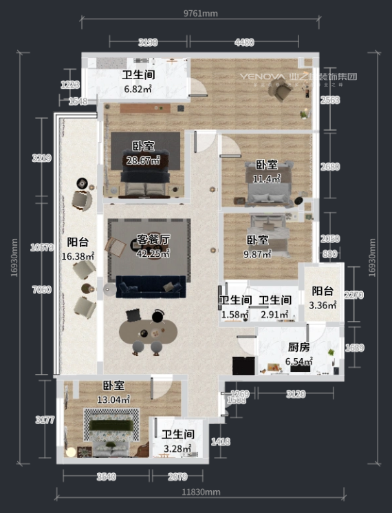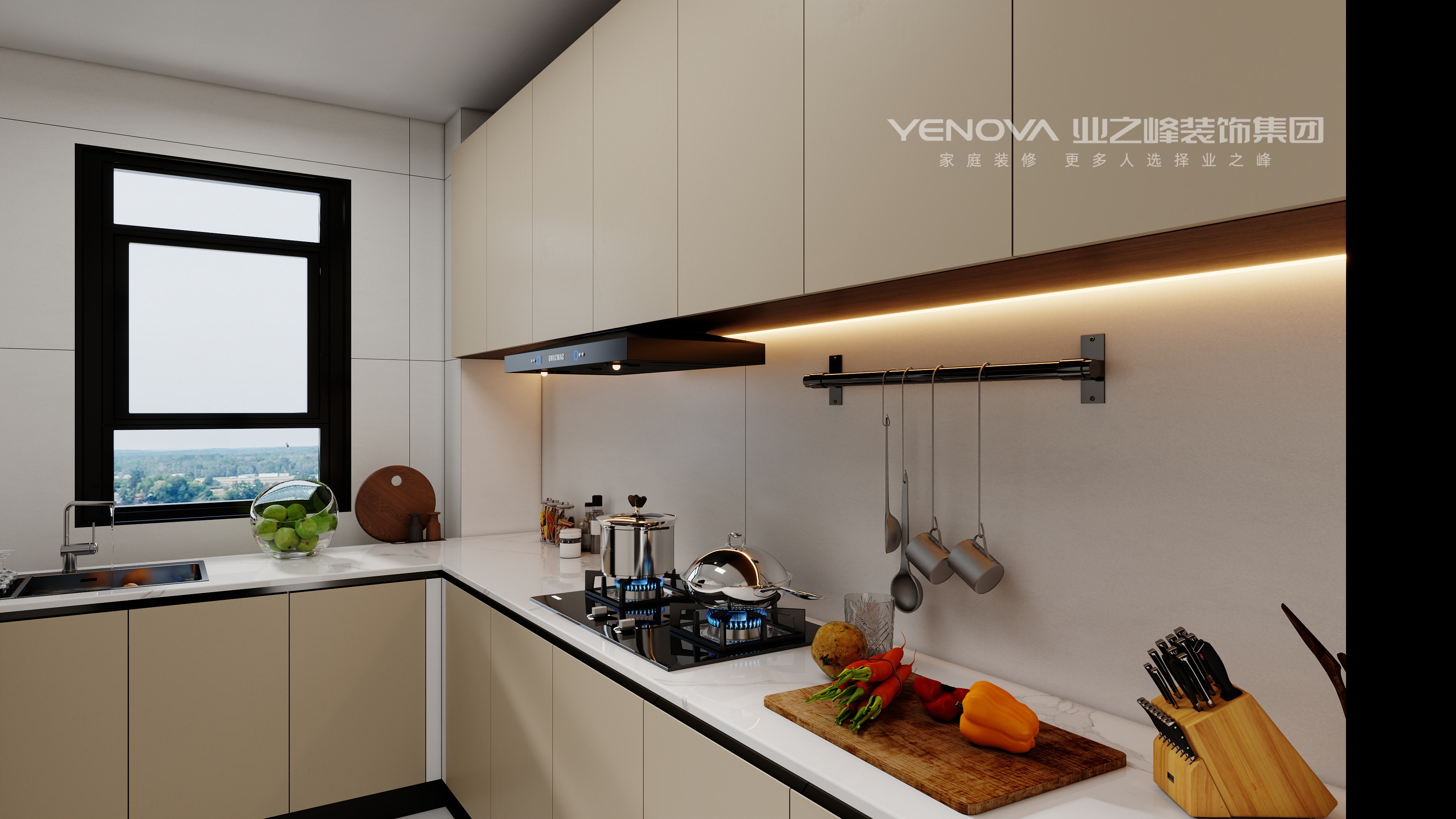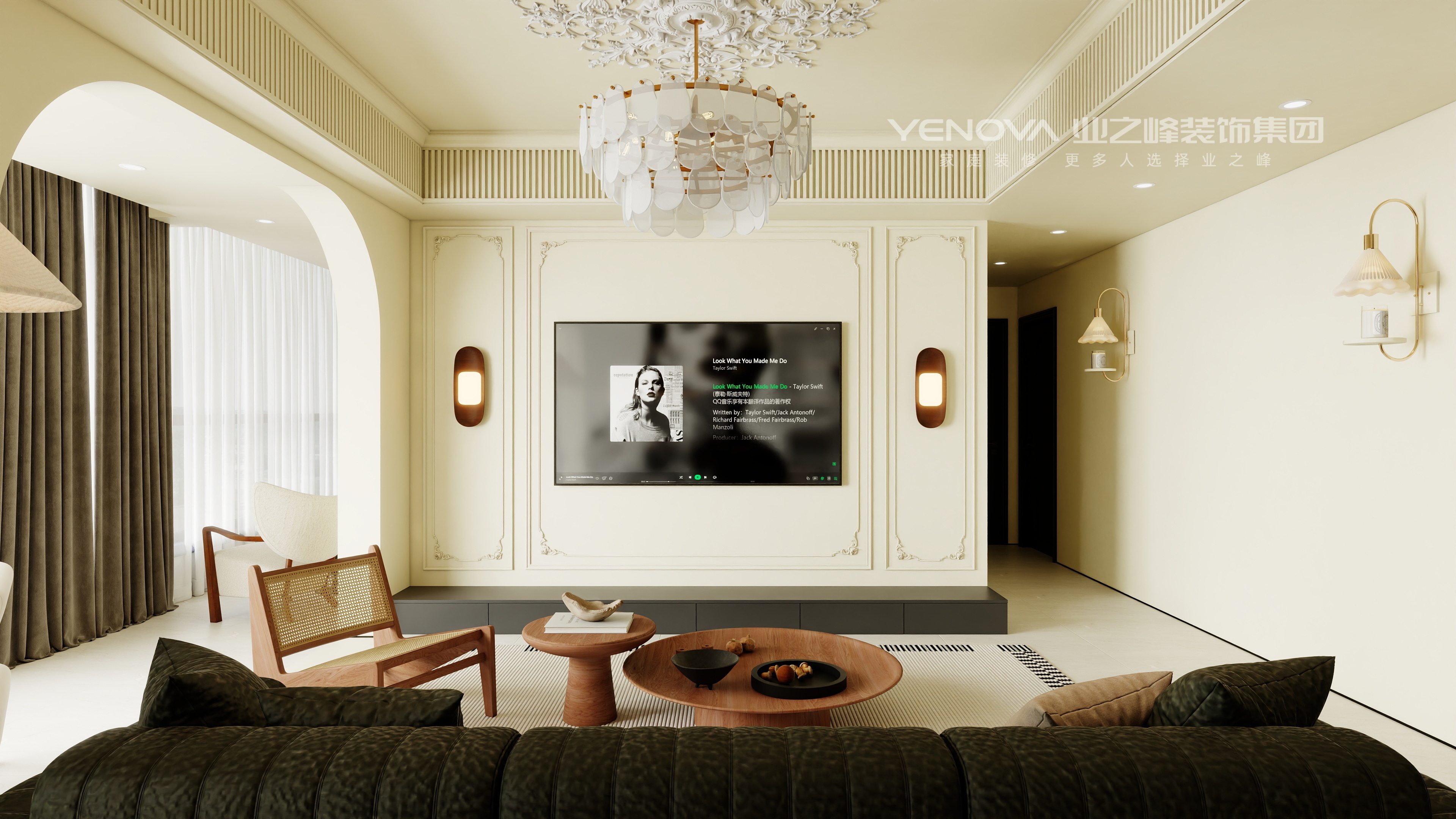 整体采用现代混搭风格,以暖棕与米白为主色调,营造温馨氛围。厨房简洁实用,充足收纳与合理布局提升操作便利性;玄关柜体兼具收纳与展示功能,灯光烘托归家仪式感;餐厅木质家具搭配精致吊灯,营造雅致用餐氛围;客厅运用复古元素与现代家具结合,弧形设计柔化空间,打造舒适且富有格调的休闲区域,各空间过渡自然,功能与美观兼具。