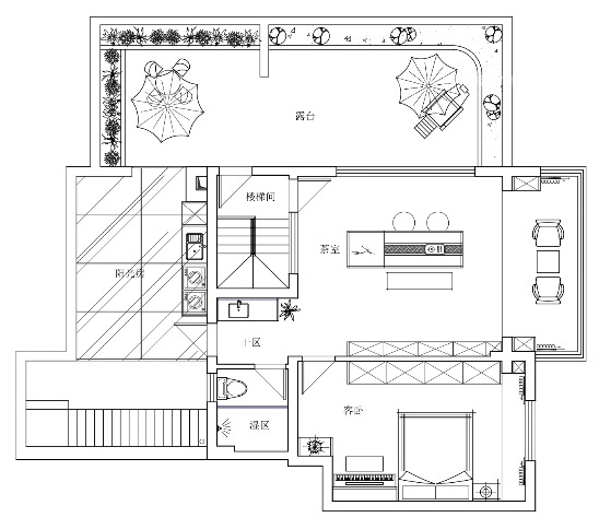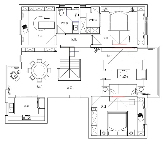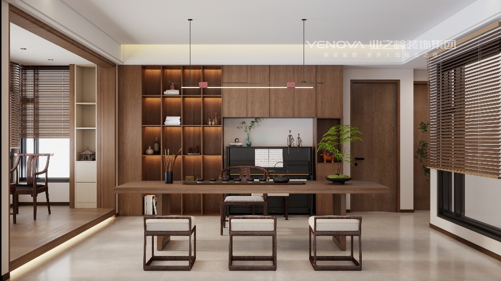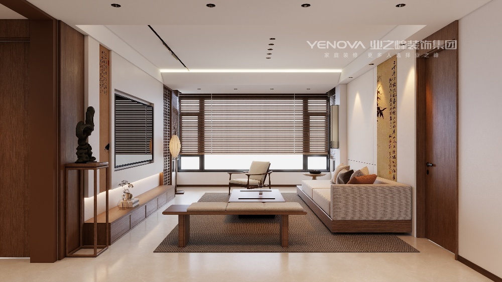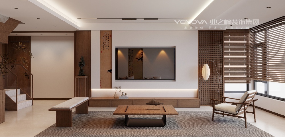 本案的设计风格主要以宋氏美学风格为主,在家具选择上尽量选择舒适的布艺沙发和线条轻巧的实木家具,也可以选择胡桃木色的成品柜子,融入一些藤编元素。既保留传统有提升舒适度。