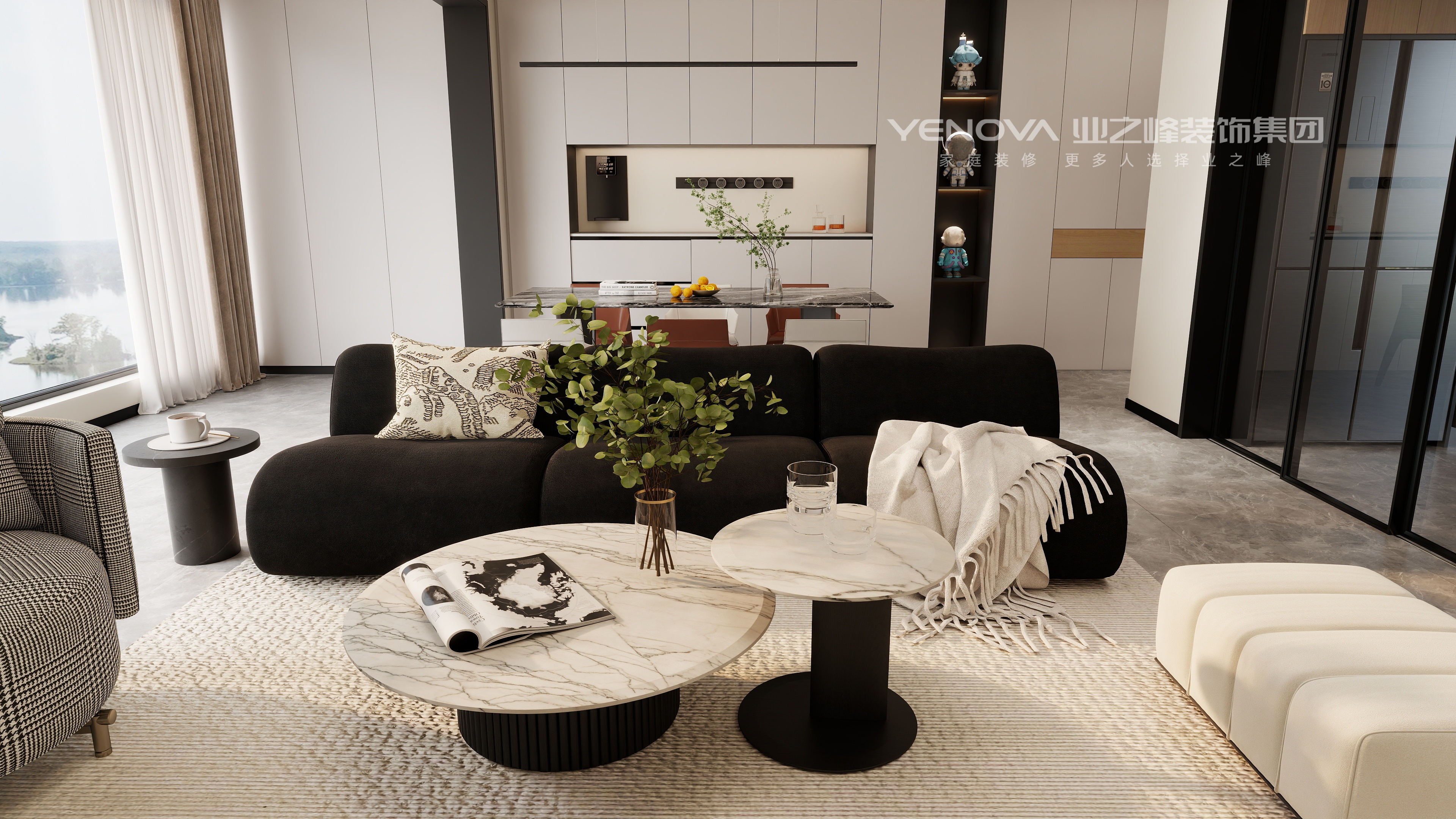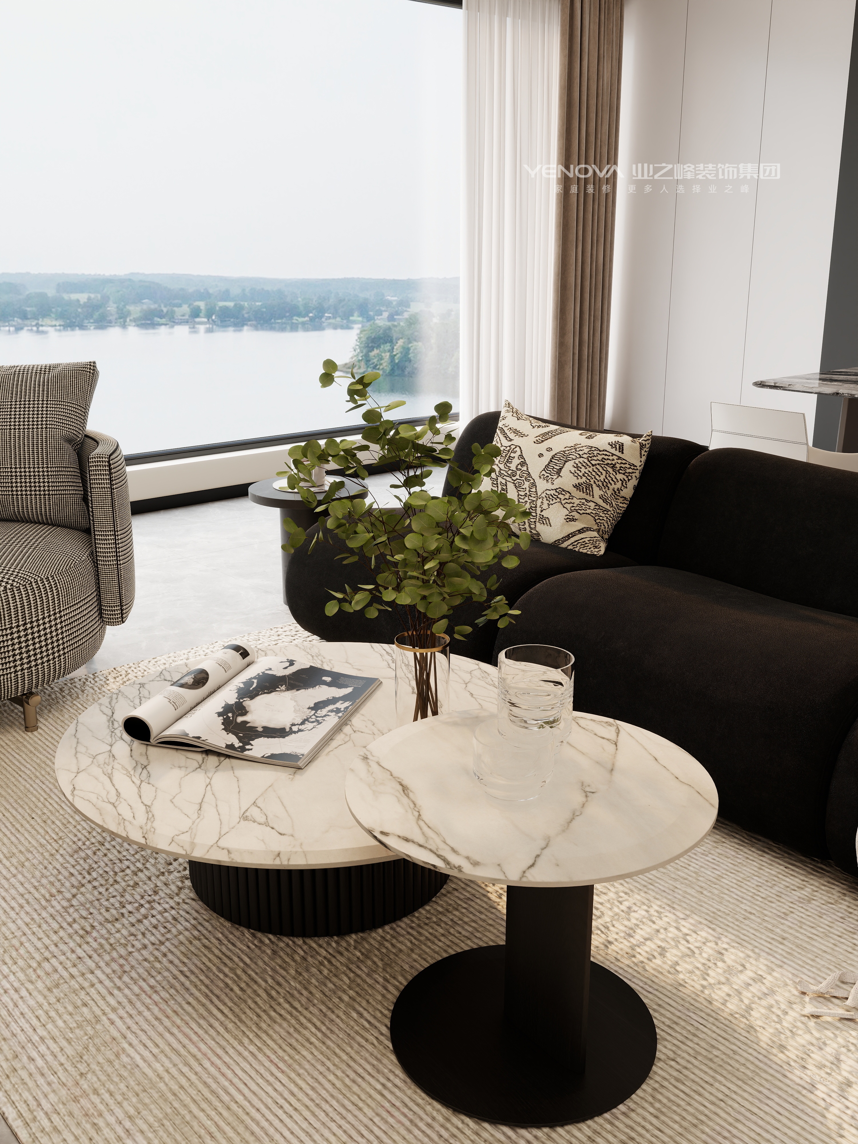 以现代简约为基调,通过黑白灰与木色的搭配,营造简洁大气的空间感。利用大窗户引入充足光线,搭配简洁家具与绿植点缀,打造舒适、自然且具格调的居住环境,各功能区布局合理,兼顾实用与美观。