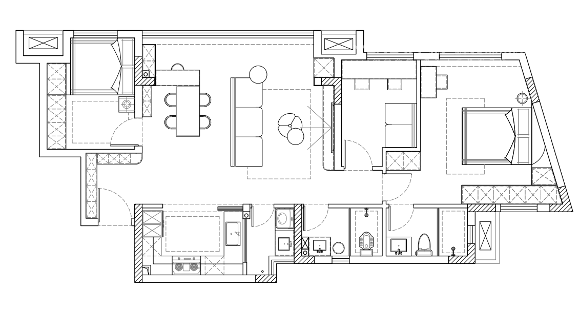 小区:新山和悦 面积:110㎡ 户型:平层 风格:中古风格