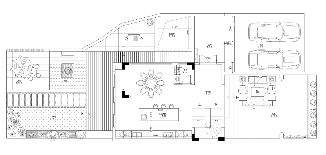 该设计为现代风格,以简洁线条与自然材质构建空间,客厅通过弧形沙发、艺术挂画营造时尚感,餐厨区借大窗与简约家具实现通透与实用的融合,整体呈现出舒适且富有格调的现代生活氛围。