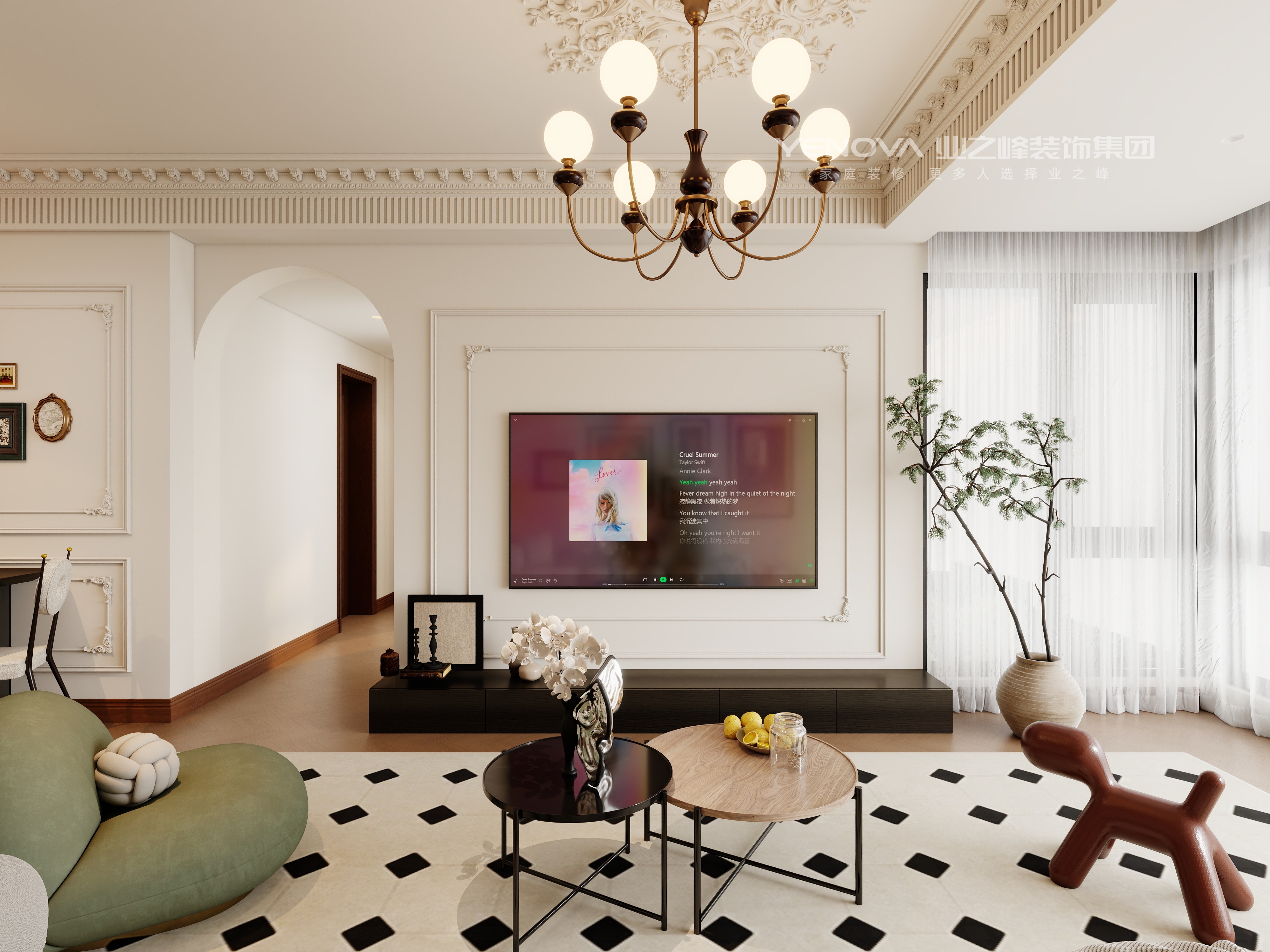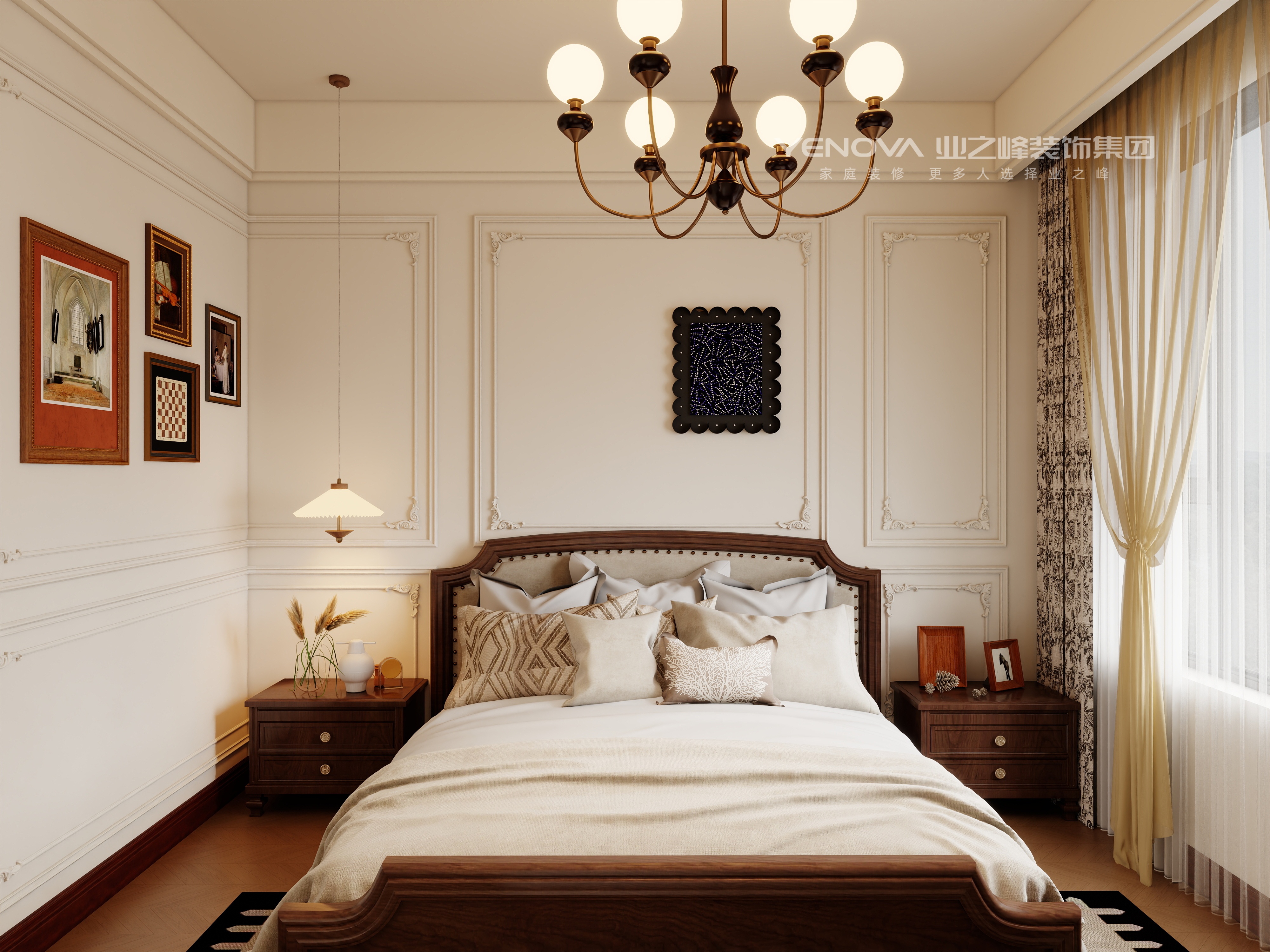 以法式复古为核心,融合精致石膏线、复古吊灯等元素,搭配暖棕与米白等柔和色调,再辅以艺术挂画、复古家具,营造出优雅浪漫且充满艺术氛围的居住空间,尽显法式风情的精致与典雅。