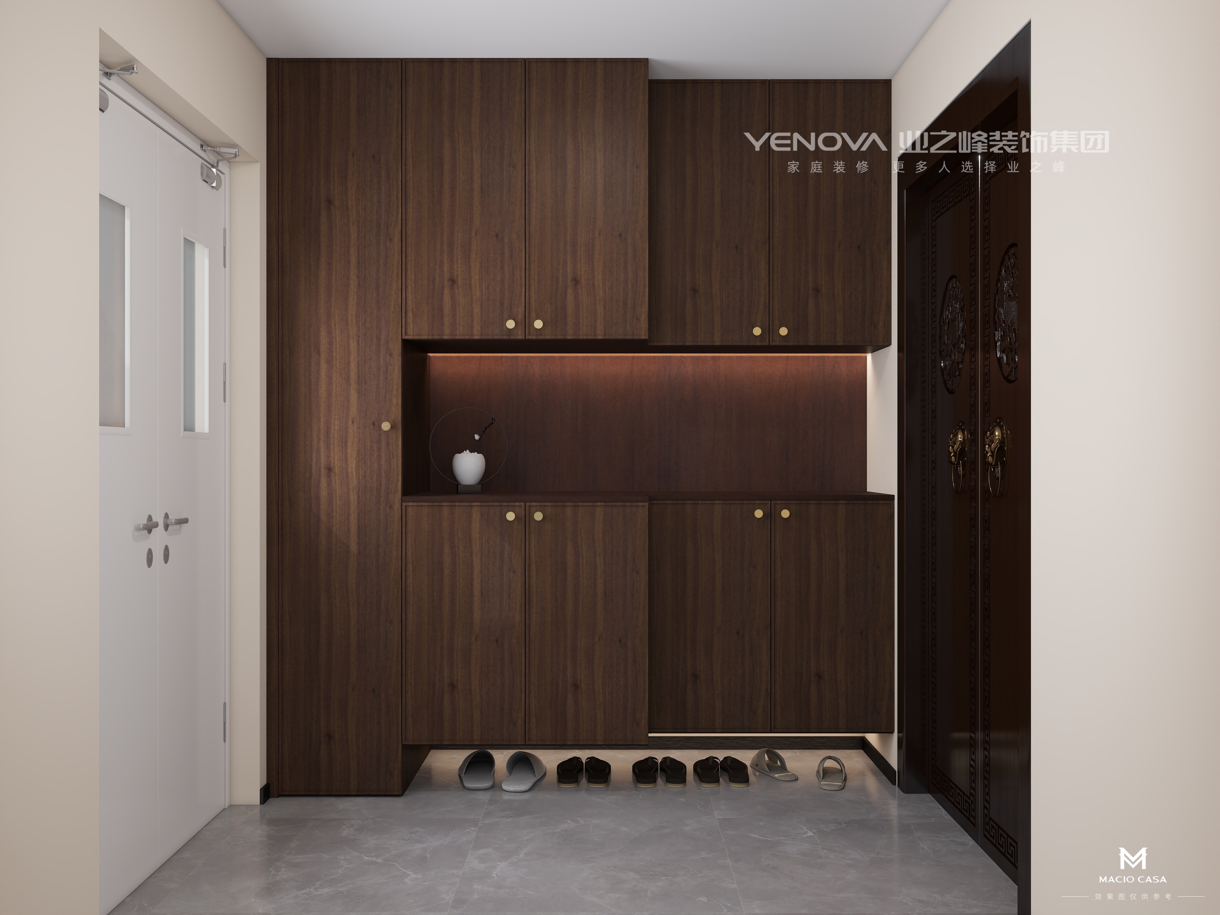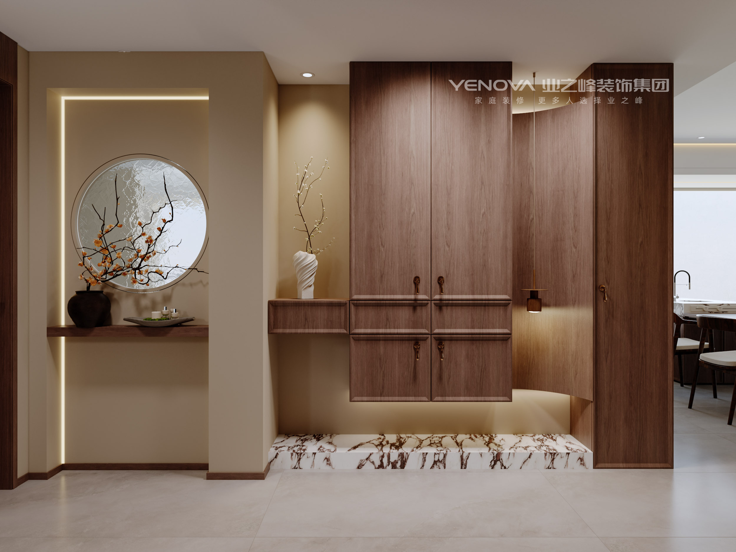 外滩壹号 取新中式内核,以木色为主调,融合现代简约手法,在收纳与美学间平衡,营造温润雅致的品质空间。